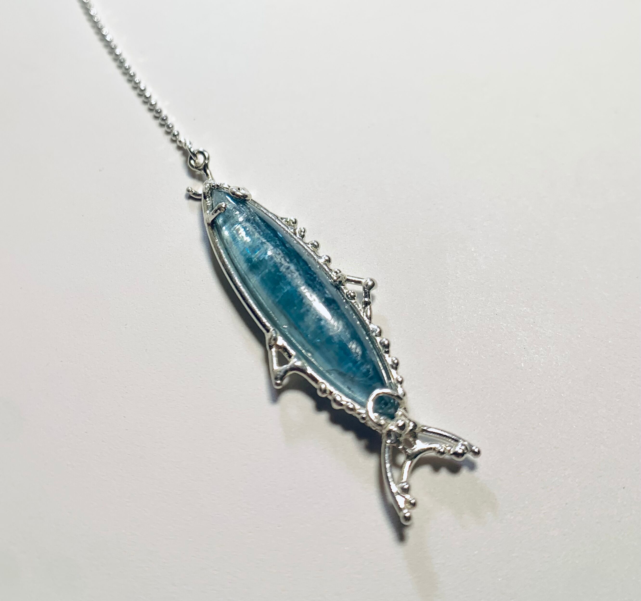 大きく育った鰆に見立てて形状に沿った石枠を製作し、アメリカンタイプのピアスに仕立てました。