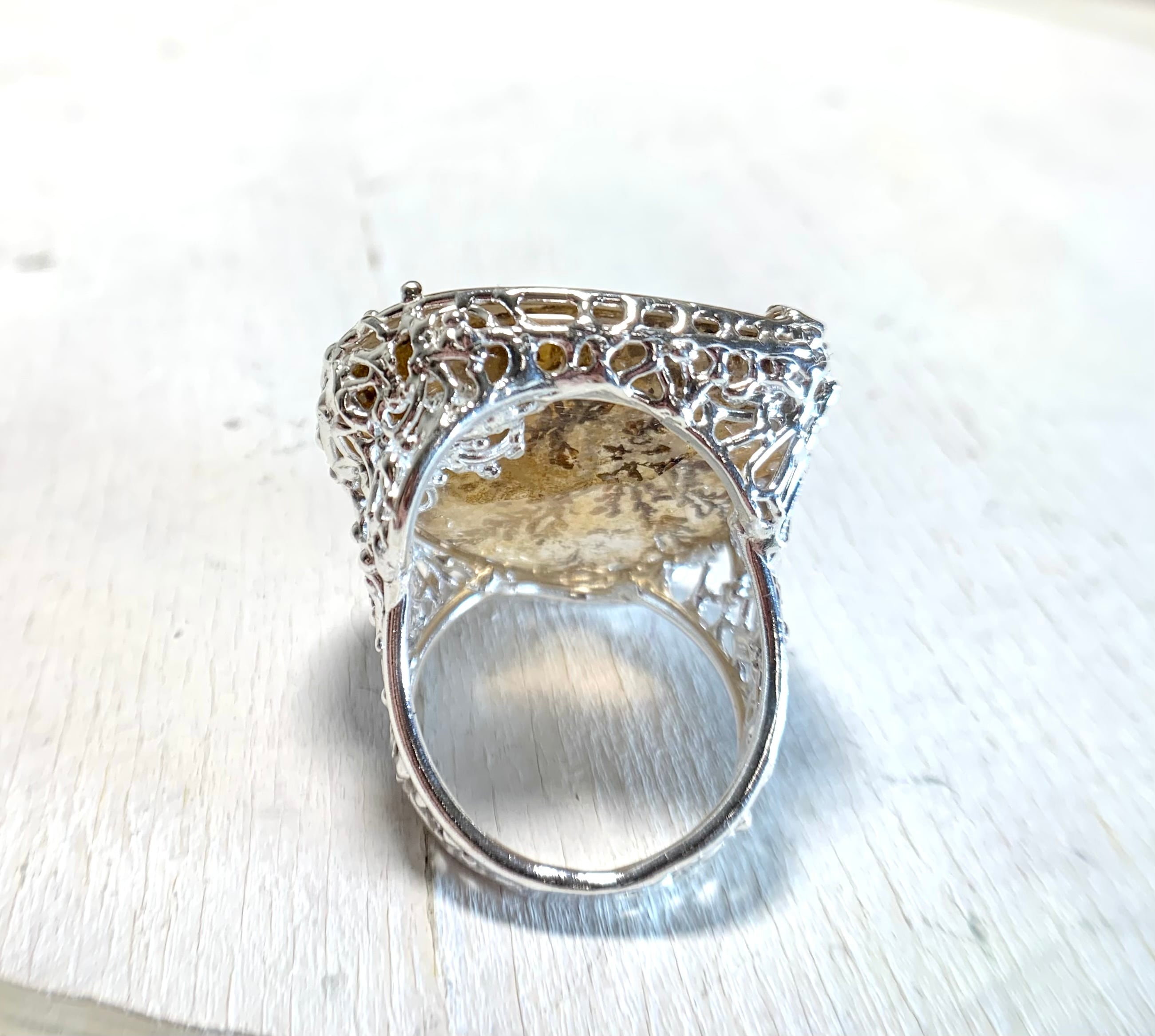 表面のキラキラした輝きや虹、裏面からの景色もとても魅力的なボリュームのあるリングです。