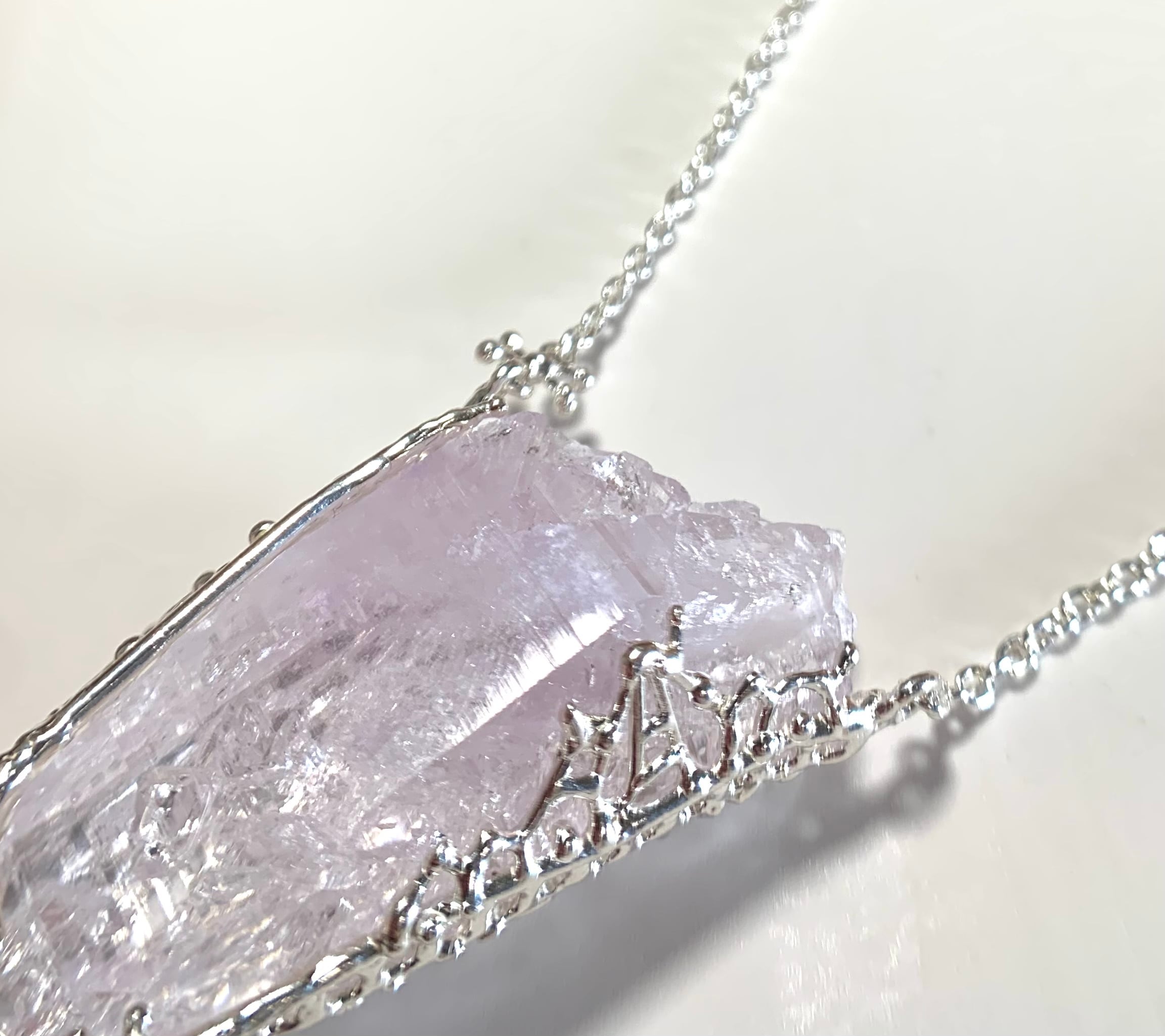 シルバーの細かなモチーフに透ける、キラキラ輝く淡いパープルカラーのアメシストとのコンビネーションをお楽しみください。