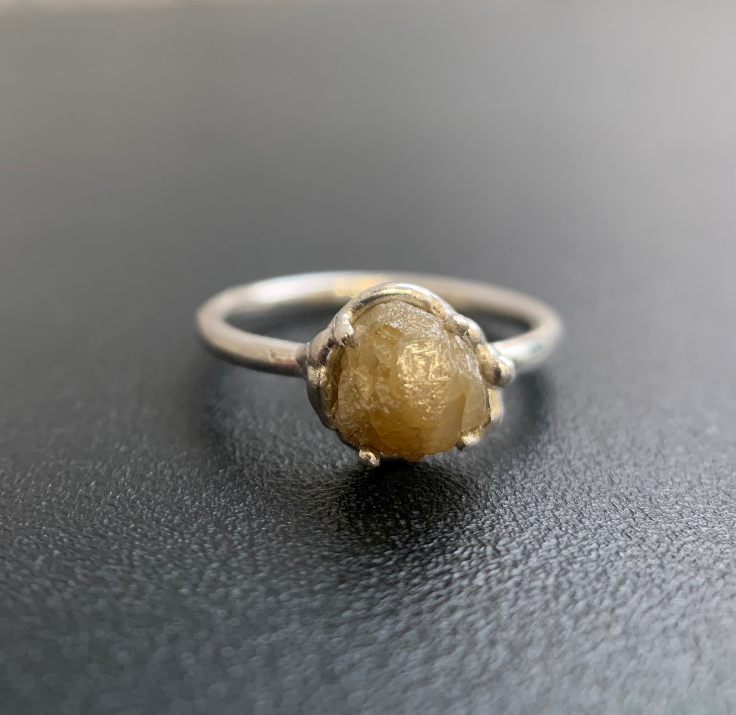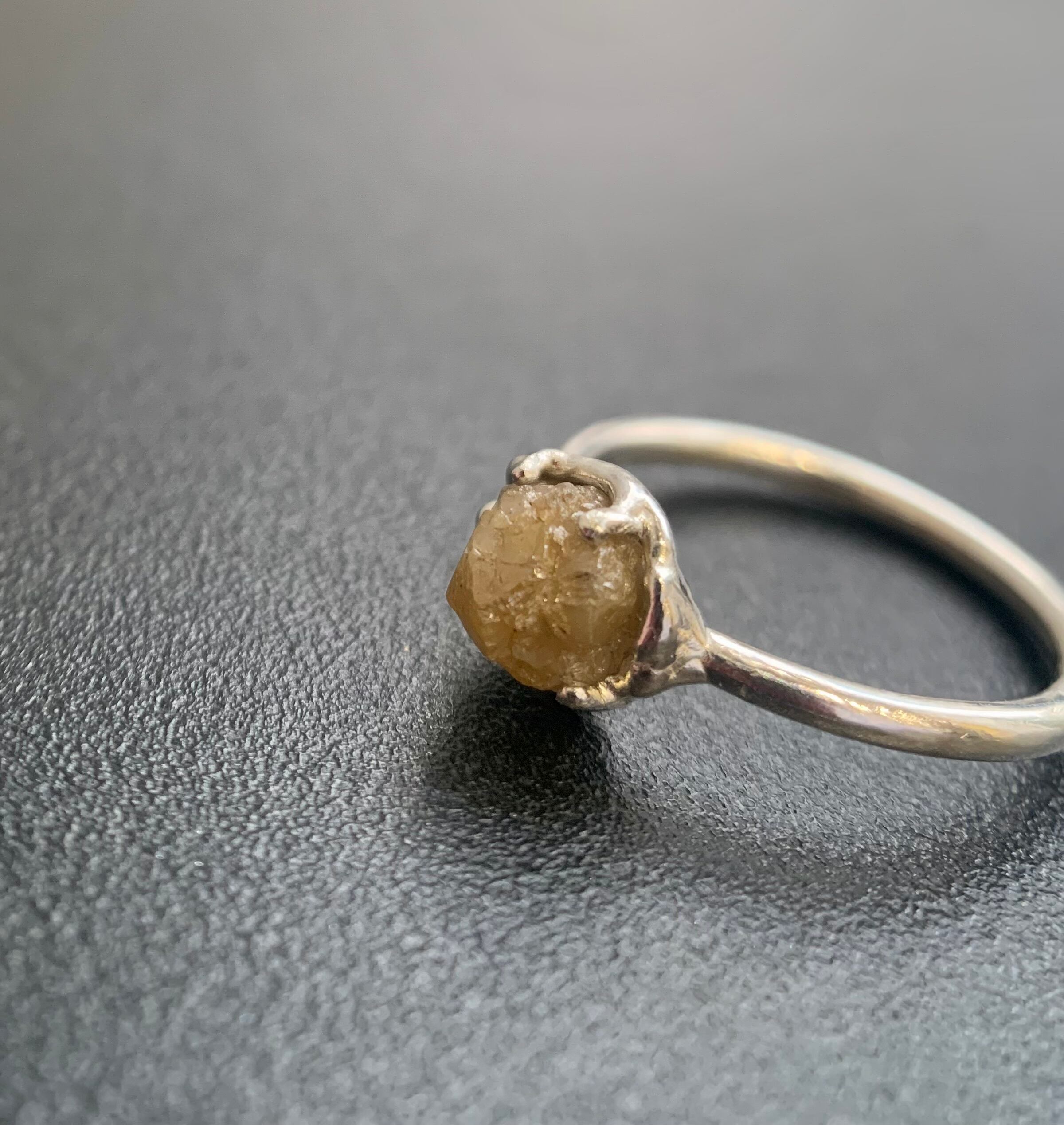 イエローグレー 大粒ダイヤモンド結晶原石のリング