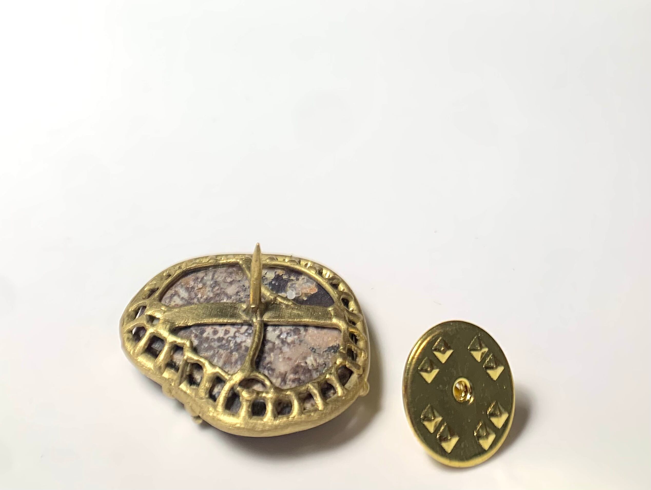 J43 ファイヤーアゲート真鍮ピンブローチ/Fire Agate Brass Brooch