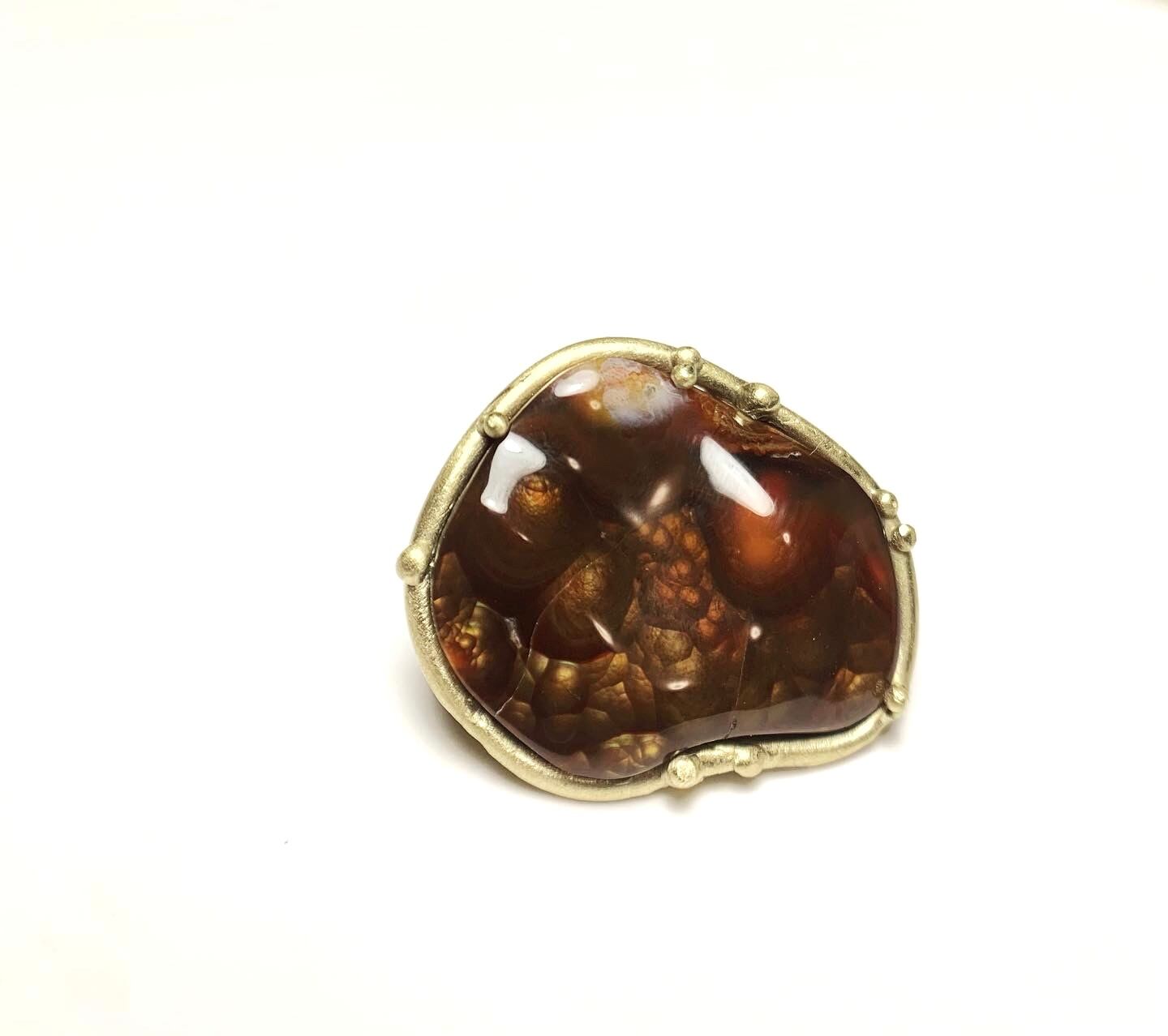 個性的なファイヤーアゲートのフリーフォームカボションをブローチに仕立てました。