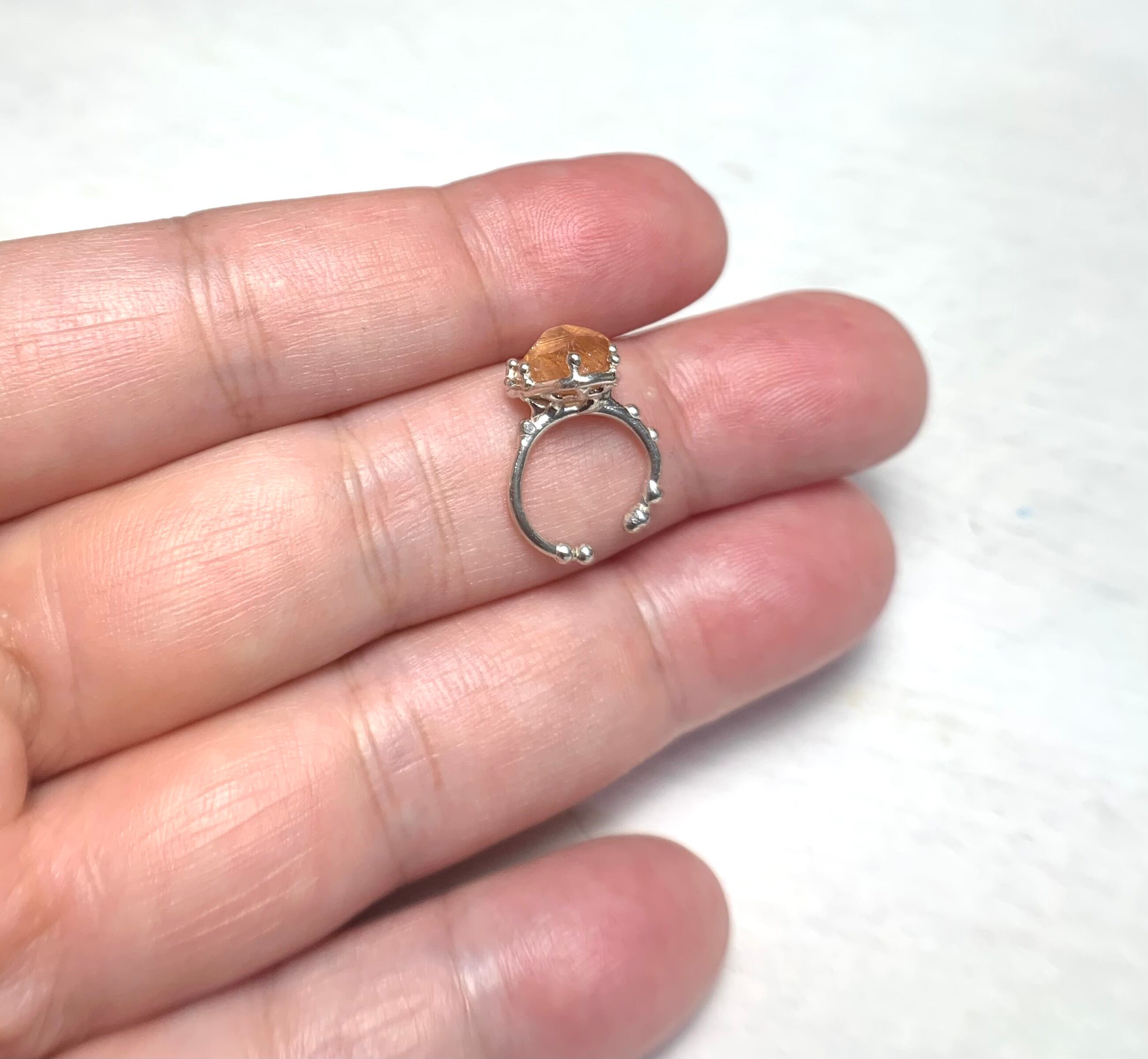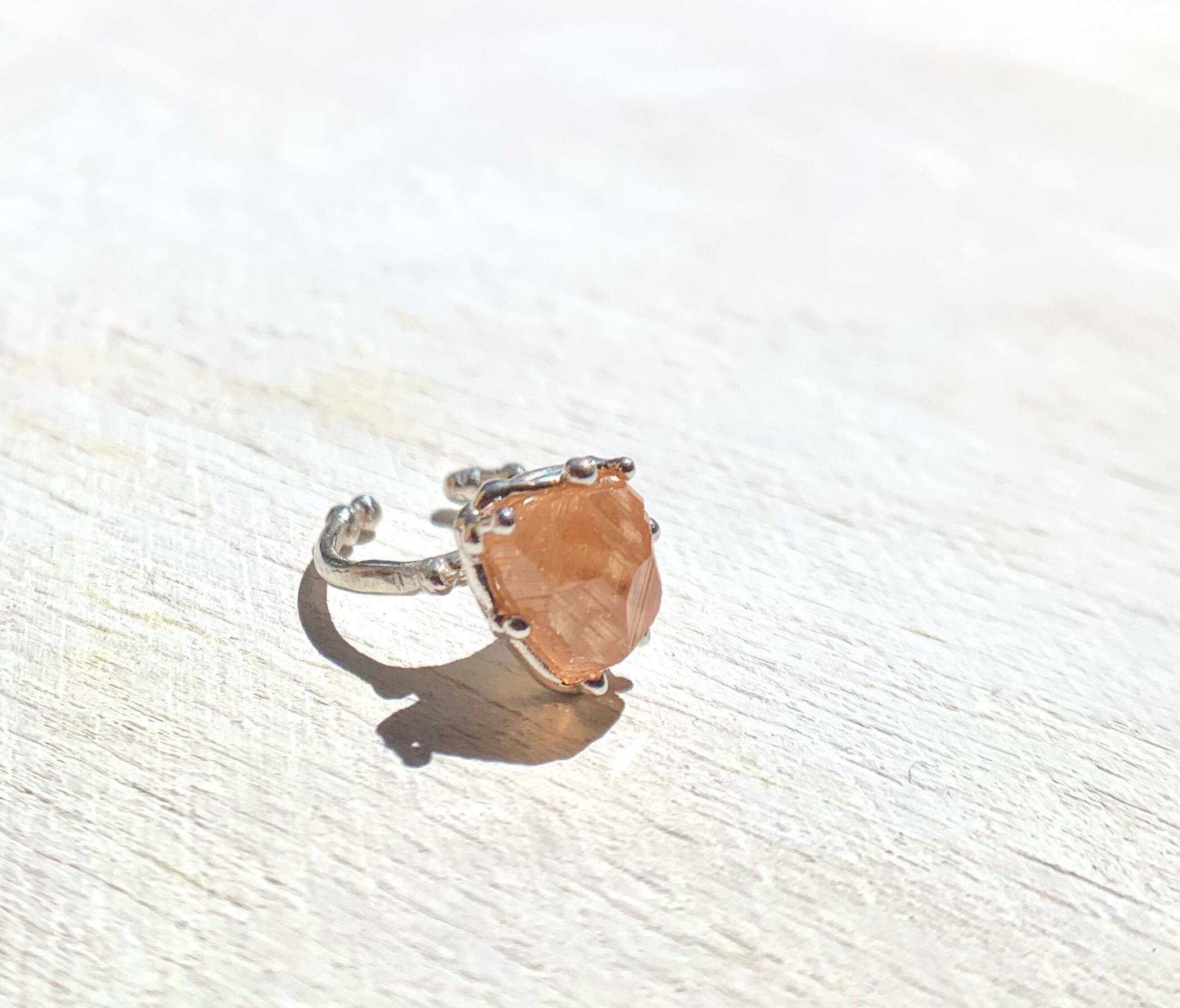 艶やかで透明感のある淡いオレンジ色のガーネット結晶をイヤーカフにしました。