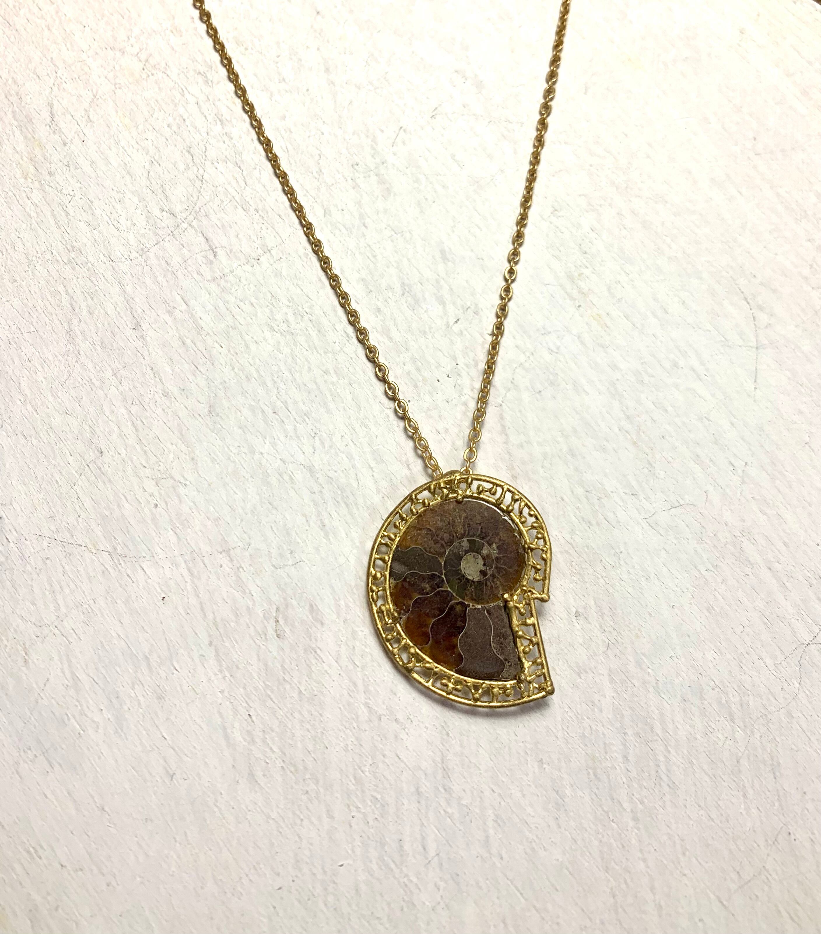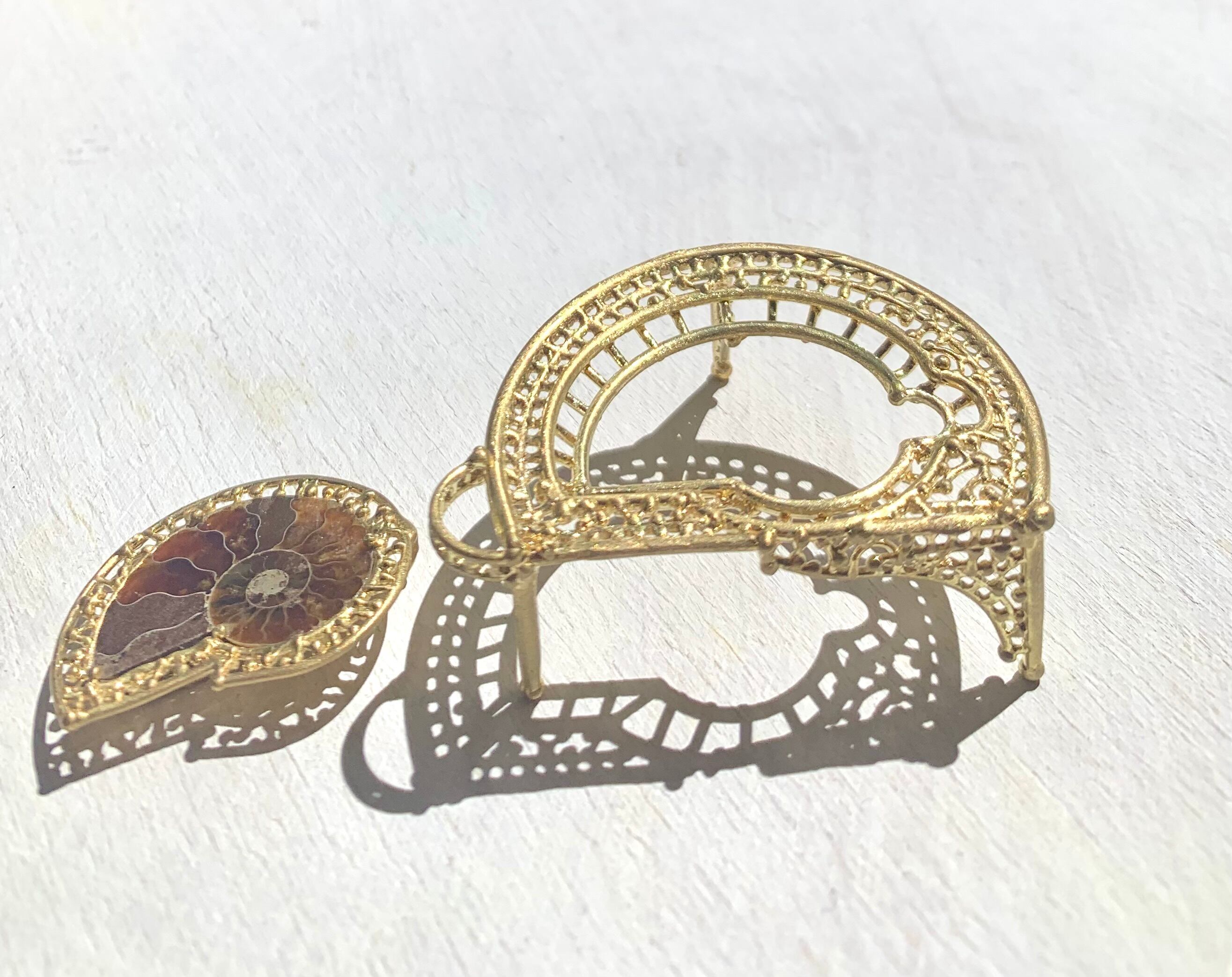 アンモナイト真鍮ペンダントトップ&専用真鍮製台座(テーブル)
