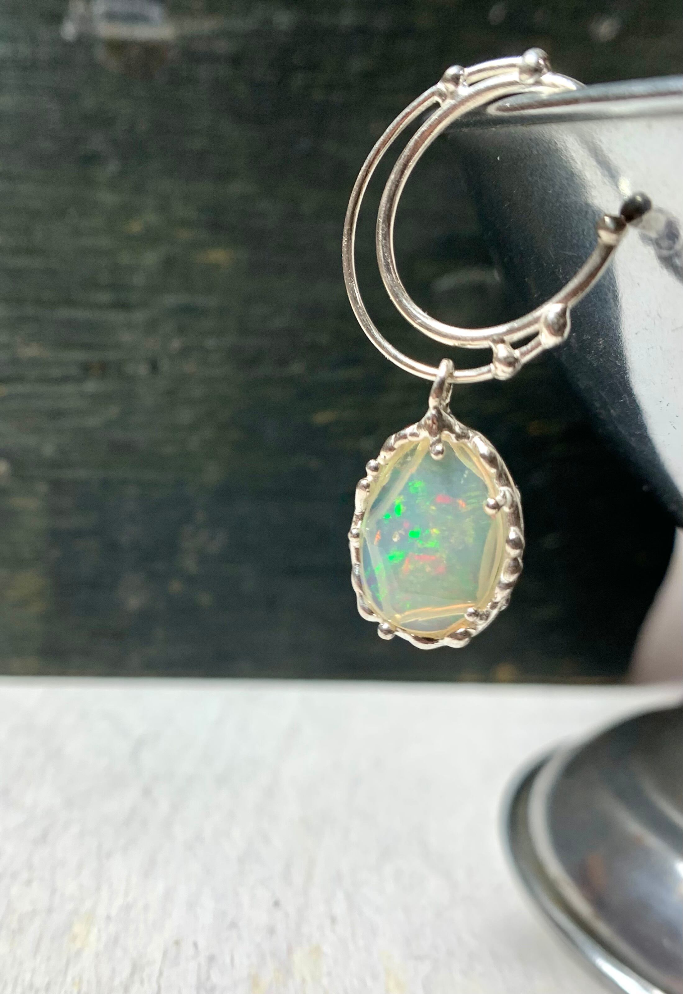 薄手のローズカットのエチオピアオパールが揺れます。