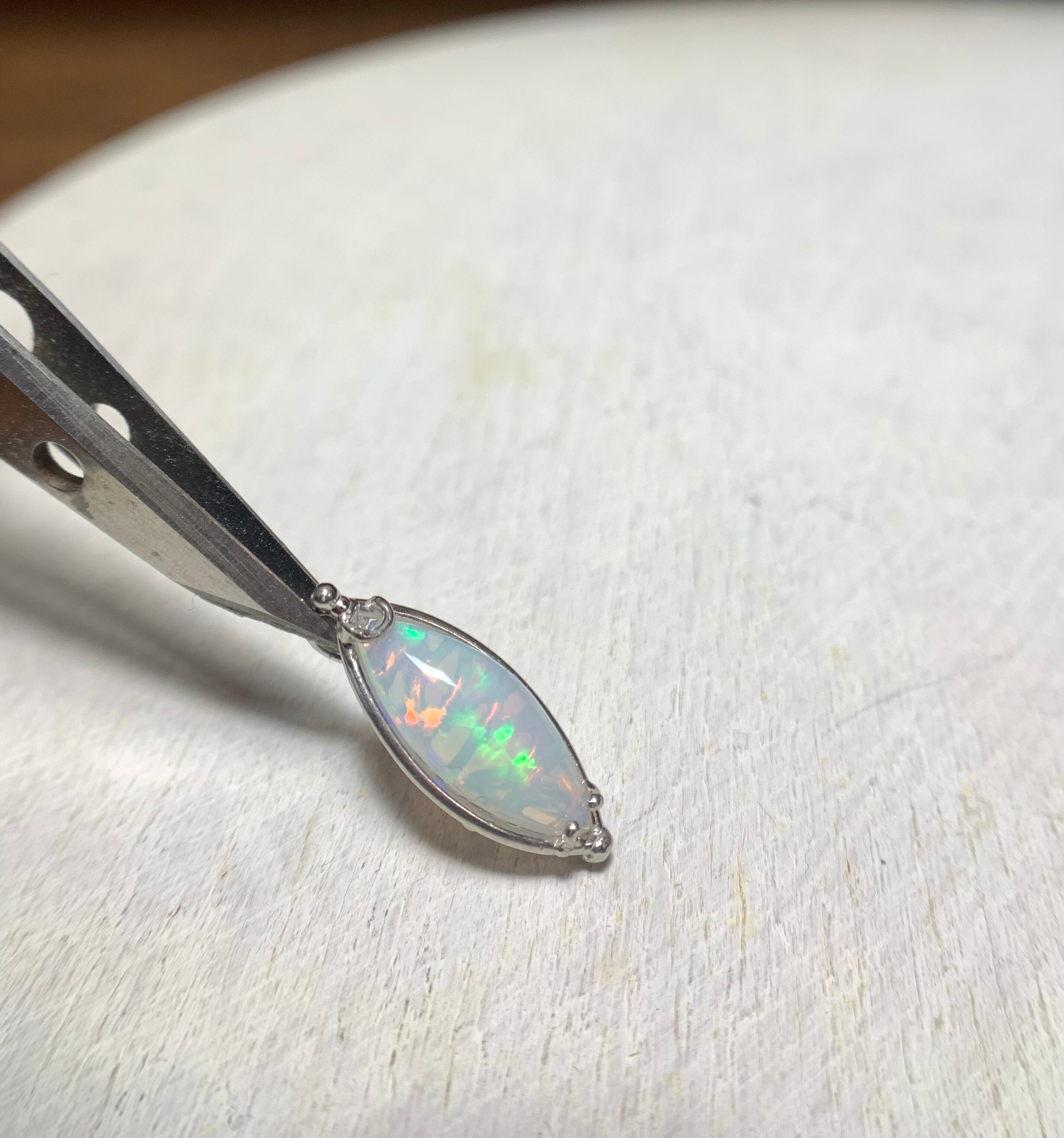 硬度の低いオパールに繊細な石枠の組み合わせなので
