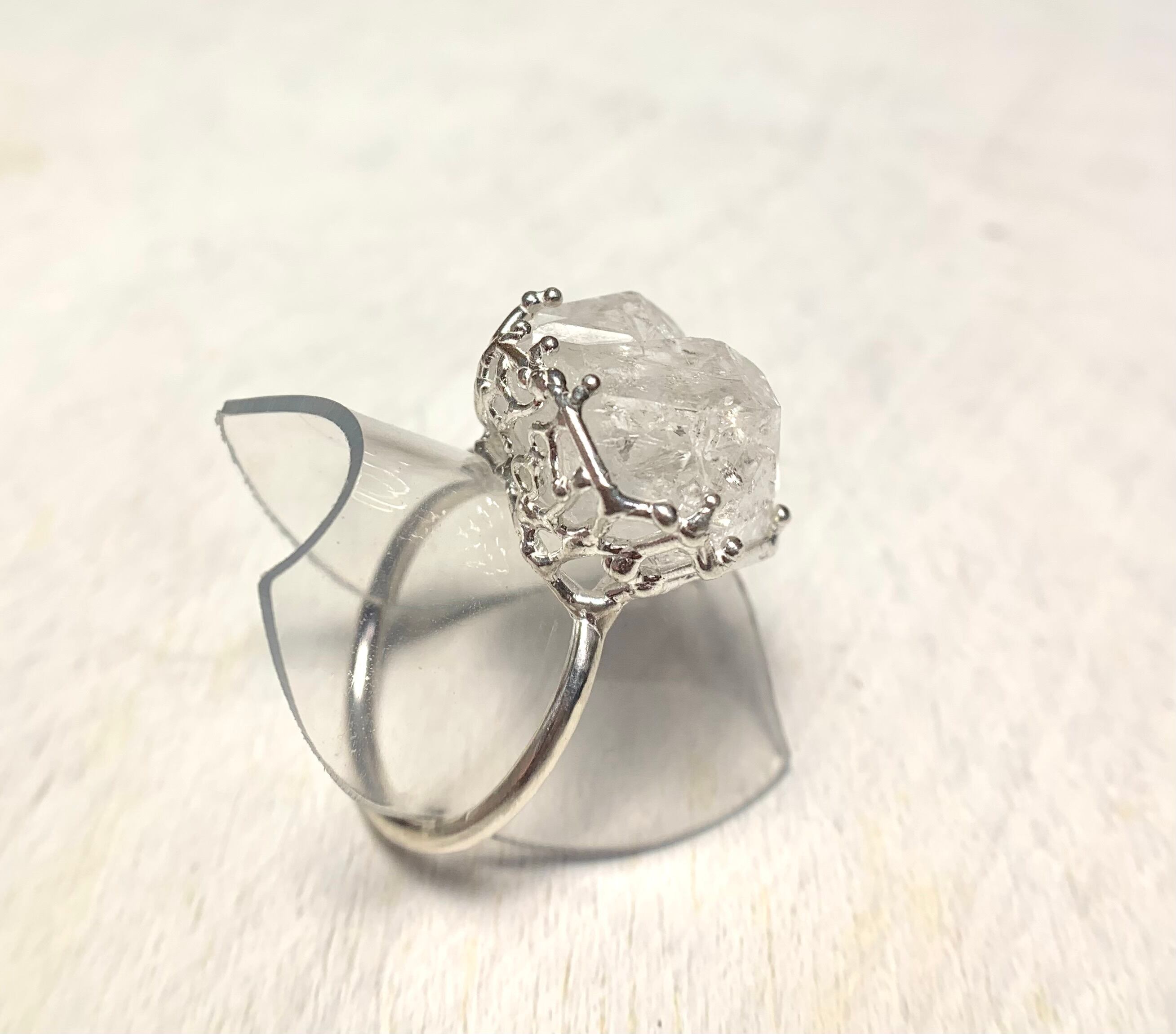 様々な角度からクォーツの内部を見ることができるリングに仕立てました。