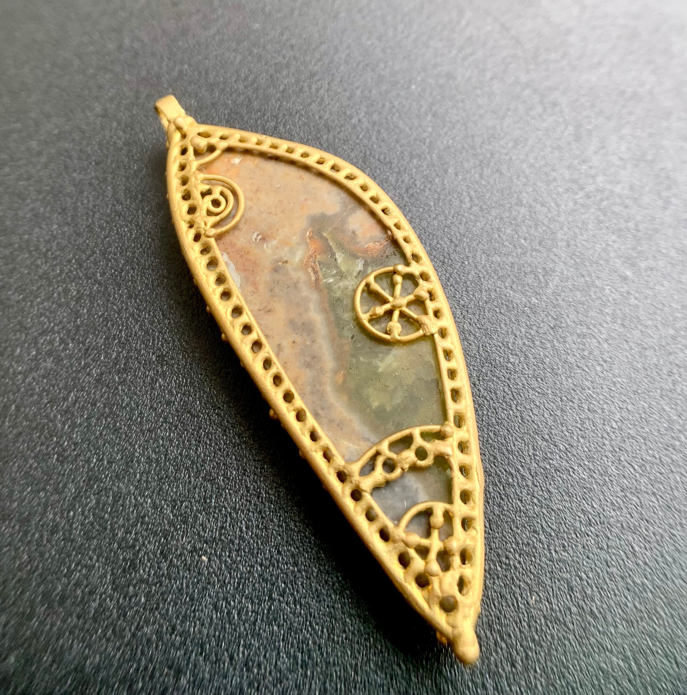 ボリュームのあるサイズのターキーフローライトを真鍮枠でペンダントトップに仕立てました。