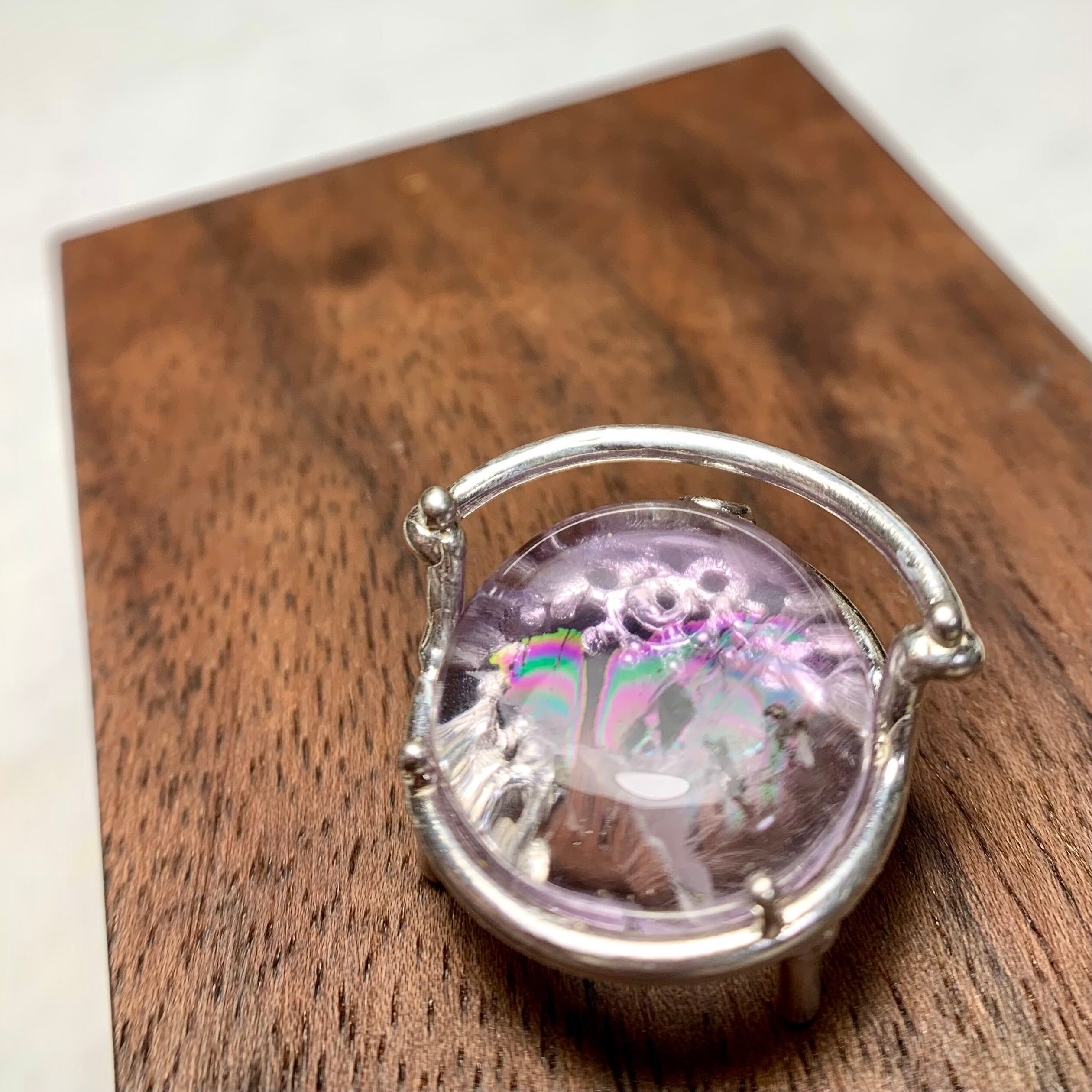 角度によって鮮やかな虹が浮かんだり、