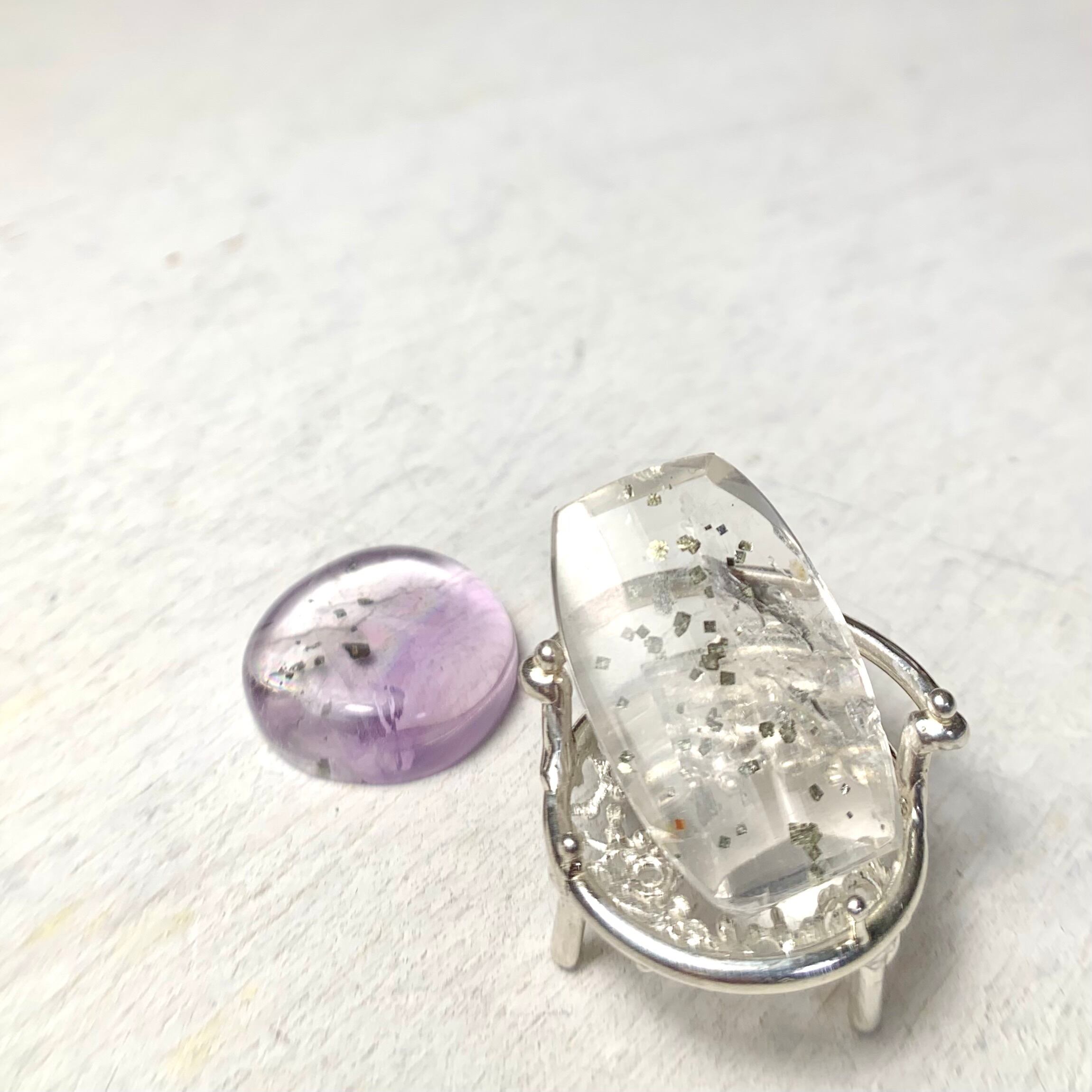 ラウンドカボションのフローライトを座面としてセッティングし、