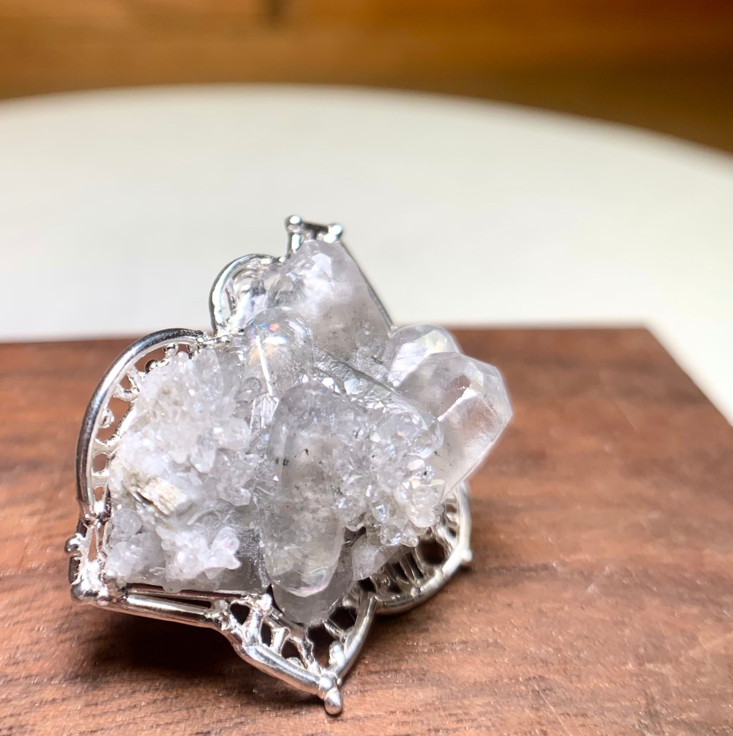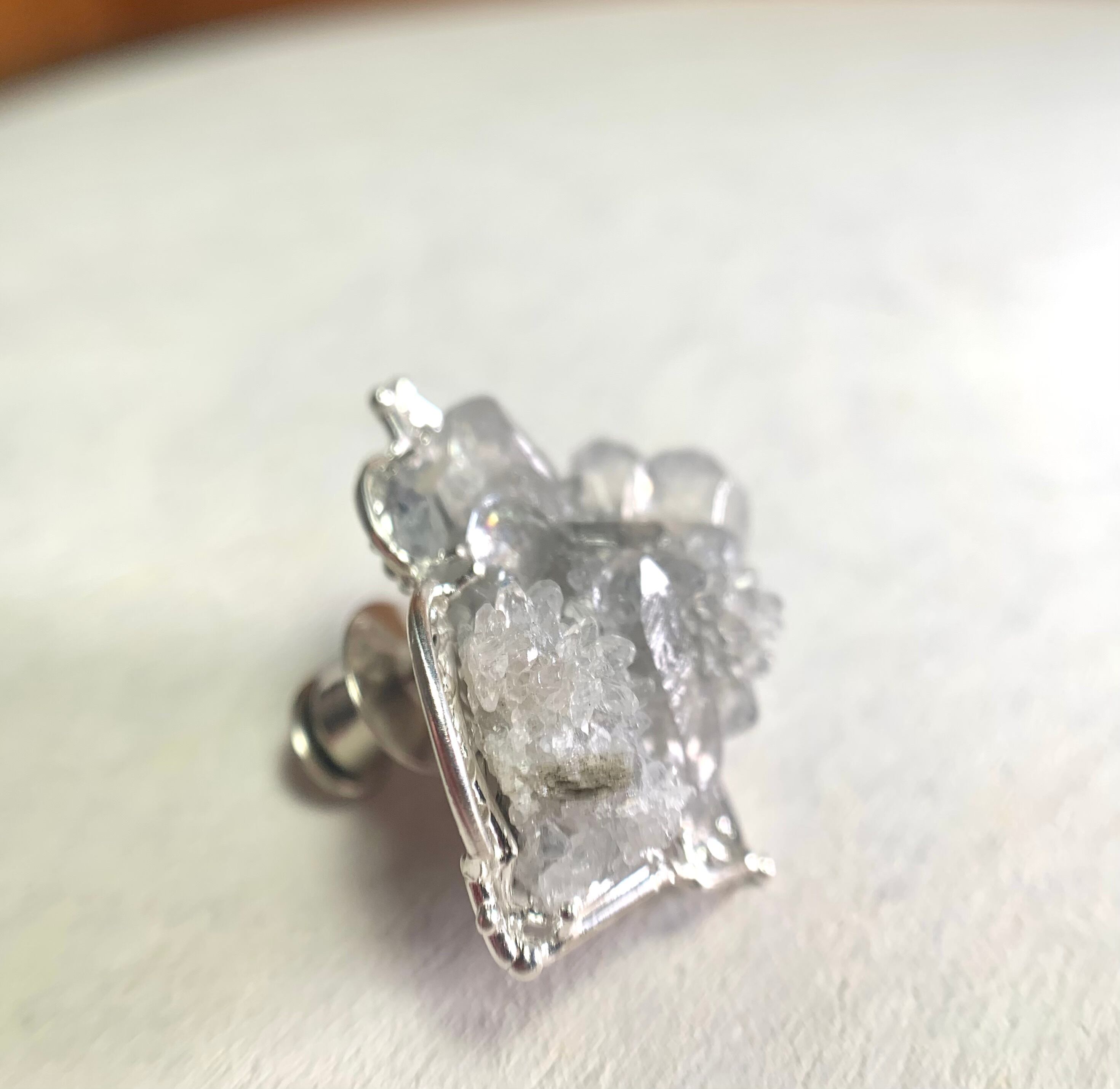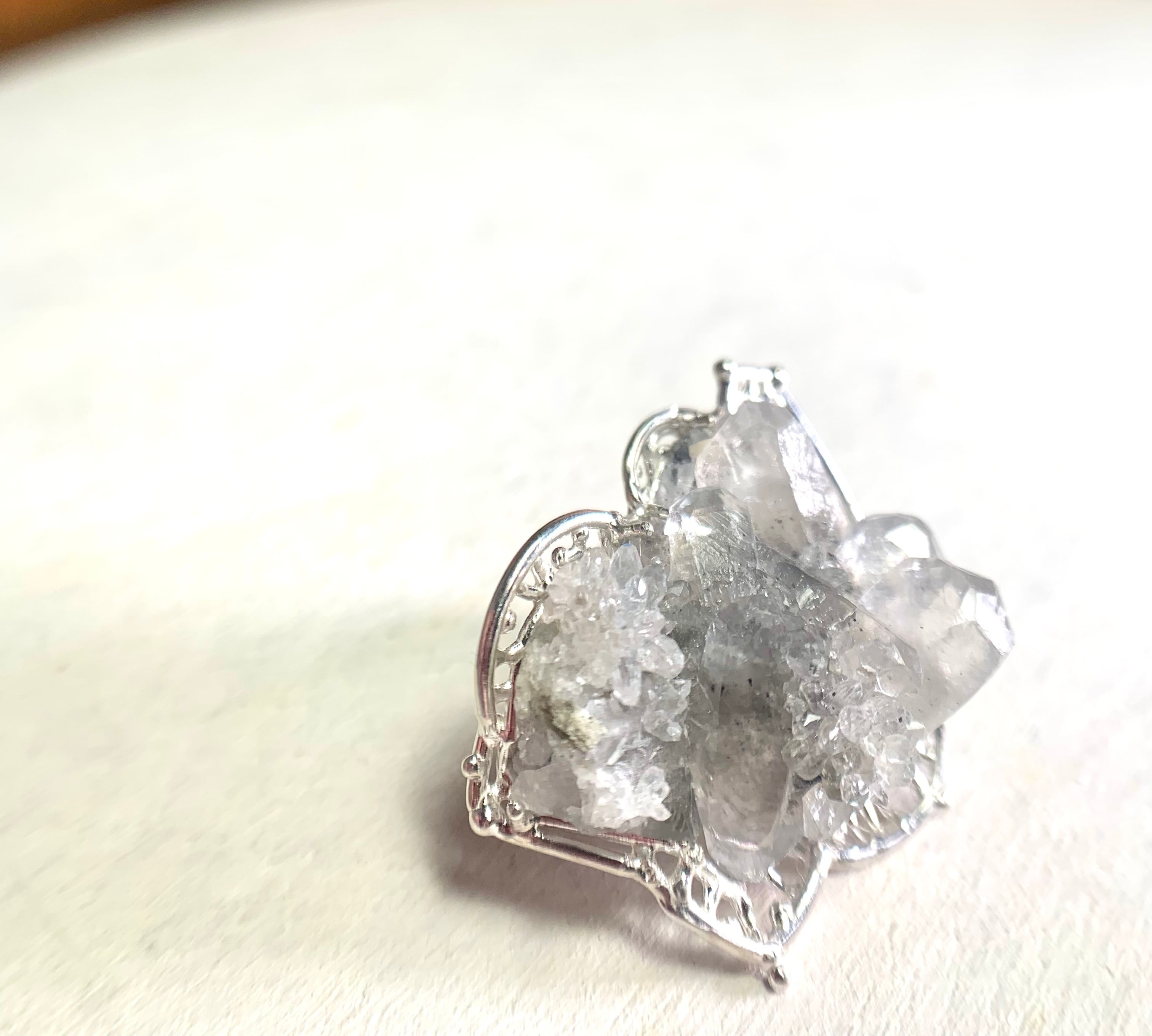 J69 スペイン産カルサイト&クォーツ 結晶原石シルバーブローチ/Calcite & Quartz Silver Brooch