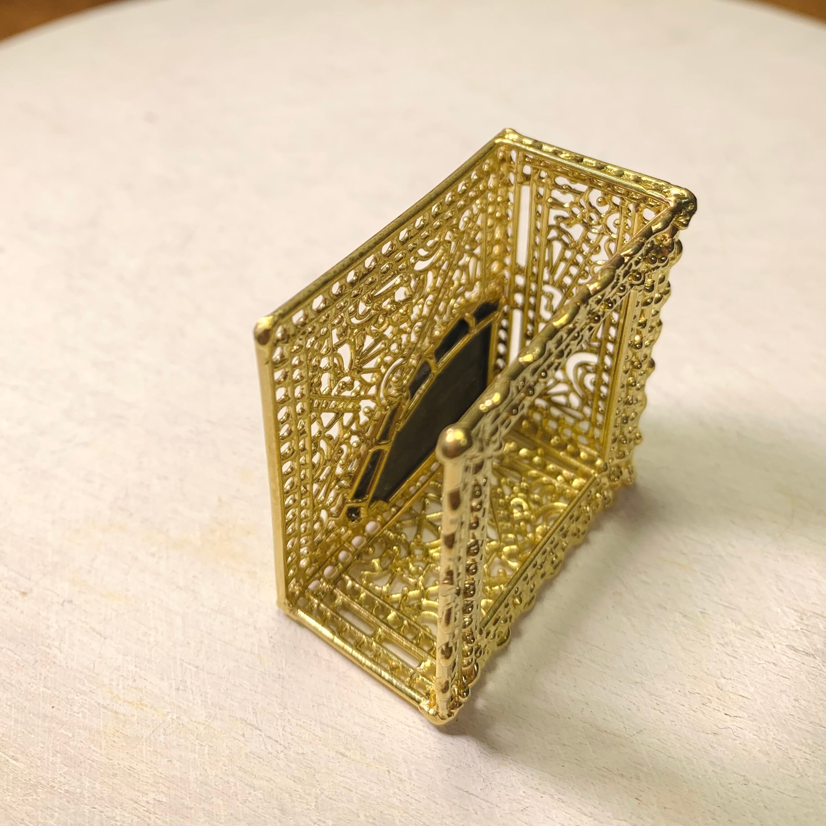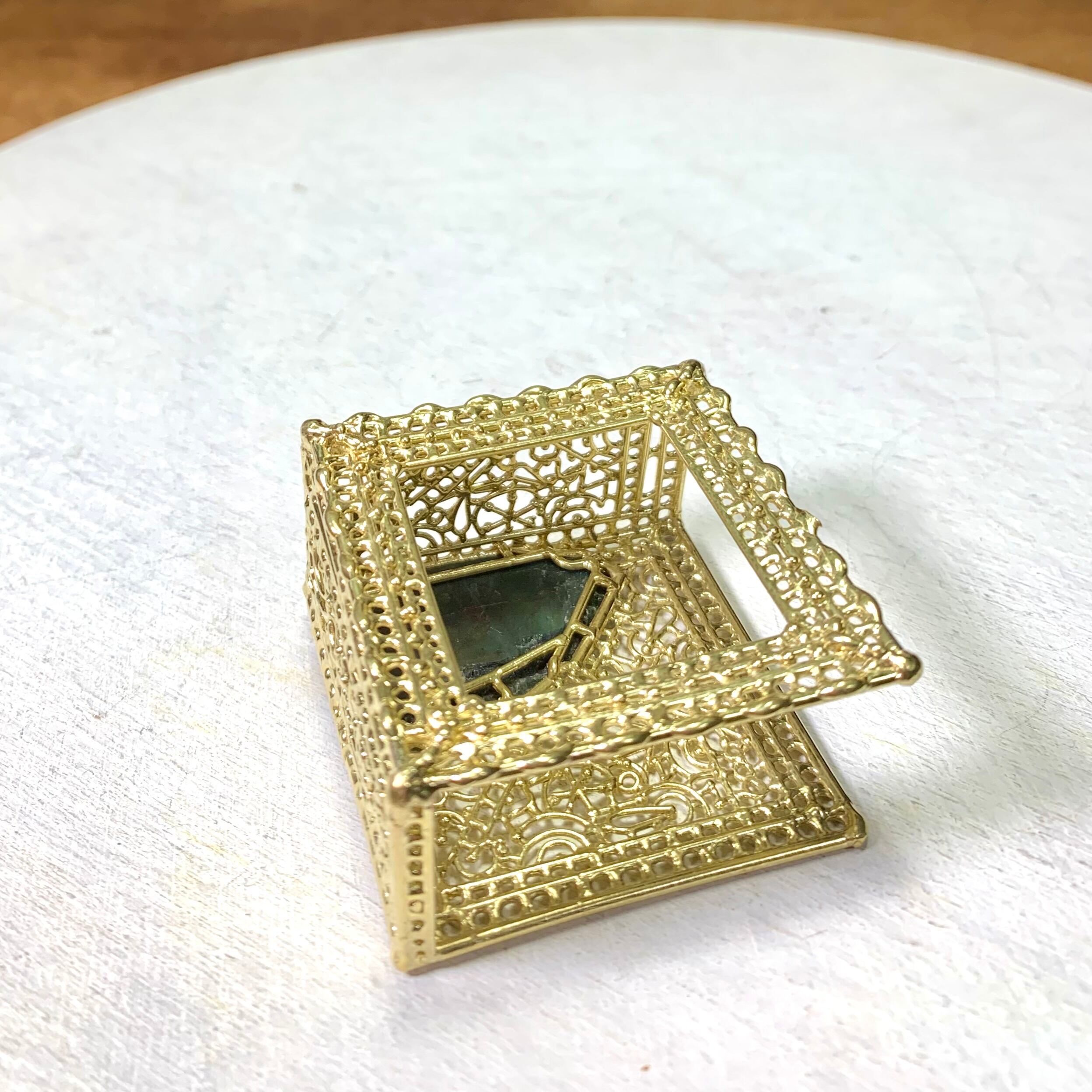 様々な細やかなモチーフが入り組んだ、開放型の真鍮製の小箱。
