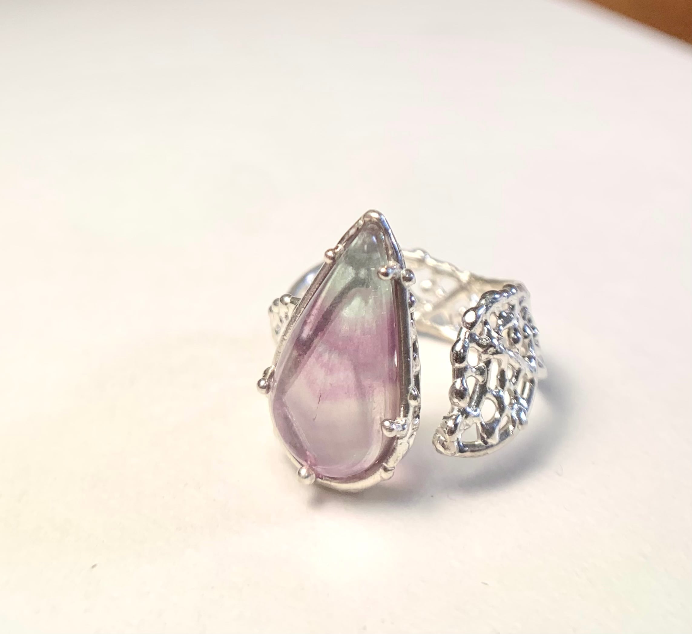 N19 マルチカラーフローライト蛍石 花びらレースのフリーサイズリング(14号〜)/Multicolor florite free size ring