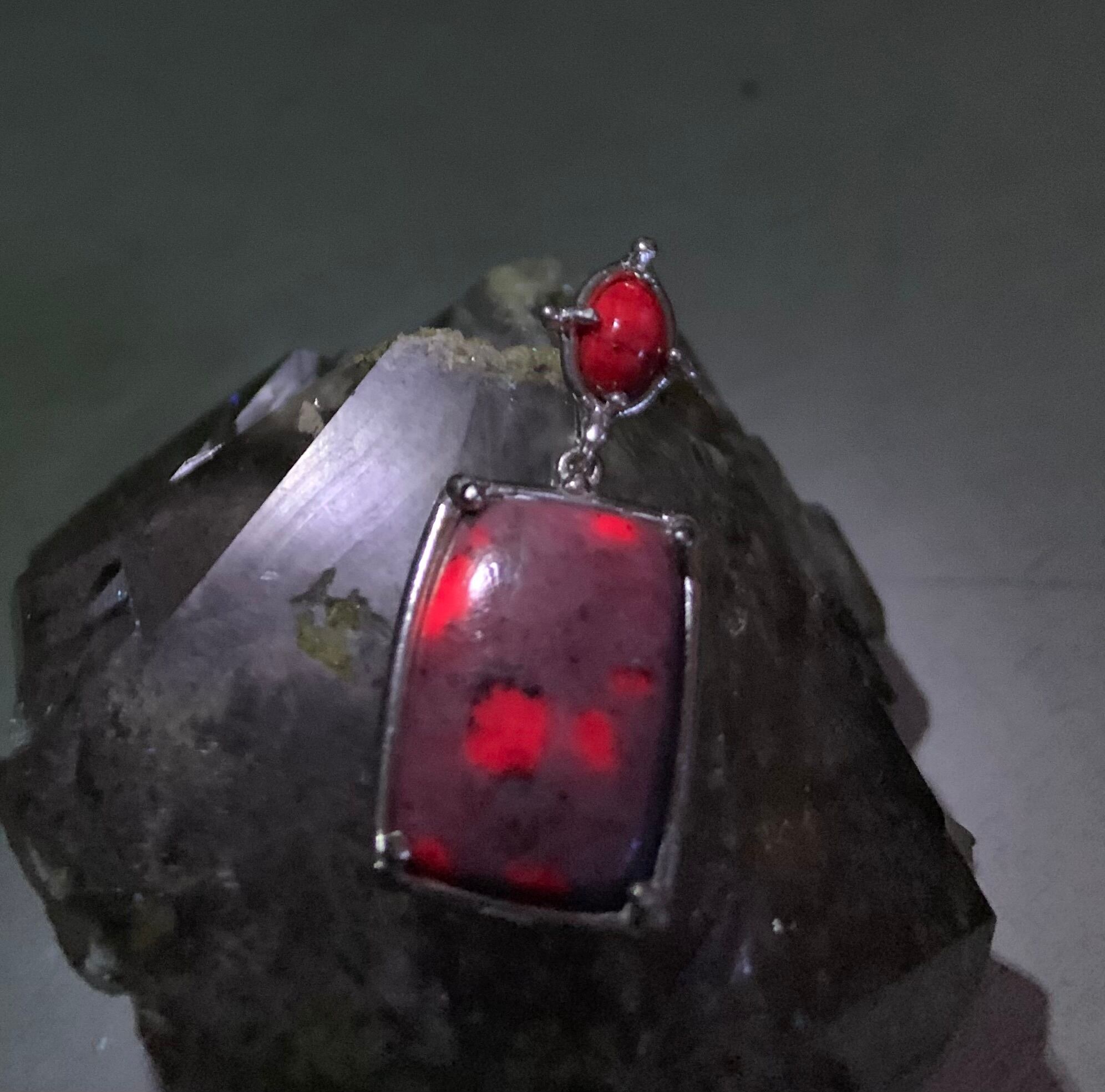 ルビー部分は鮮やかに蛍光しますので、ブラックライト下で別の表情もお楽しみいただけます。
