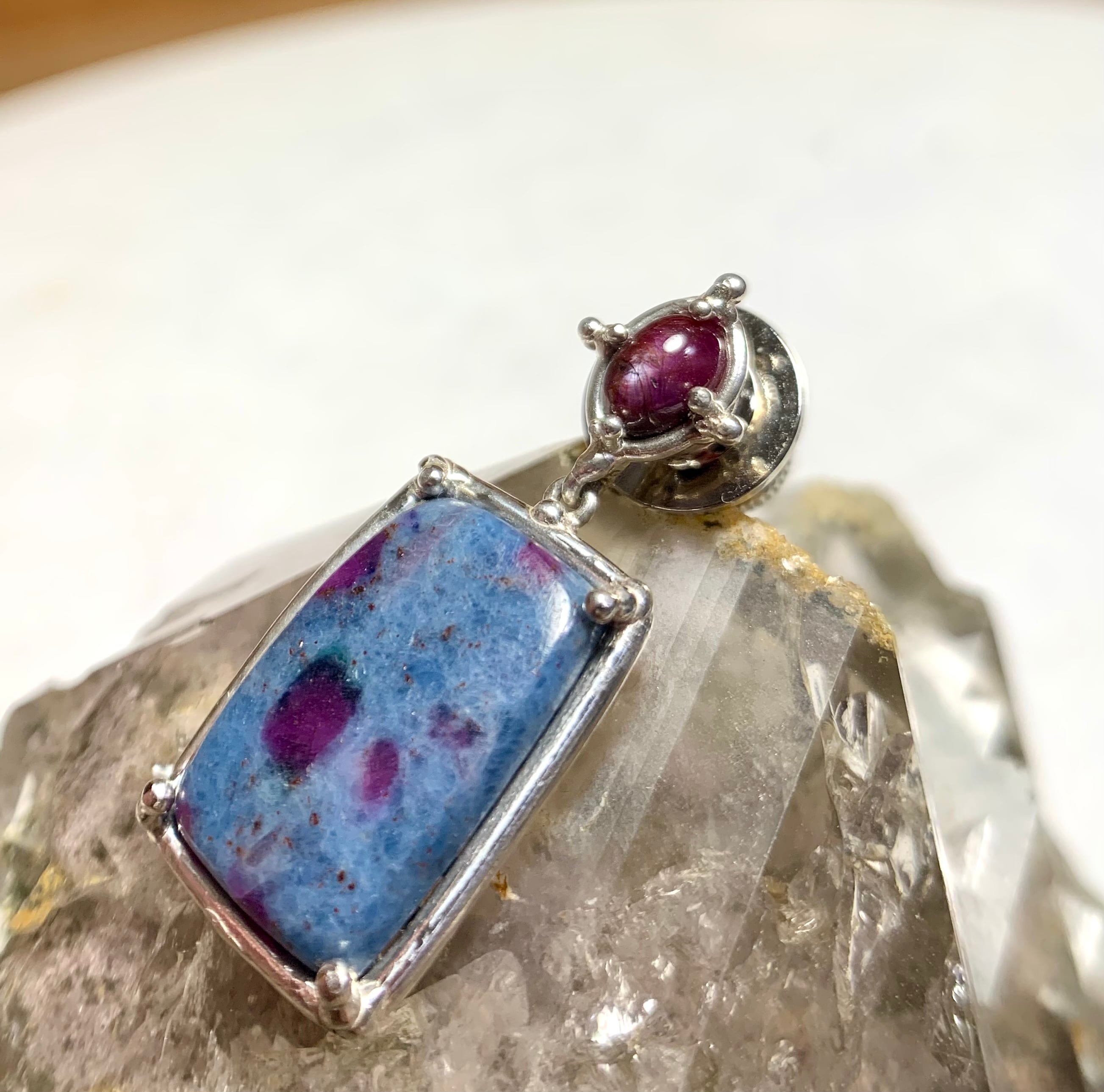 ルビーインカイヤナイトが揺れるシルバーブローチ/Brooch with shimmering Ruby in Kyanite