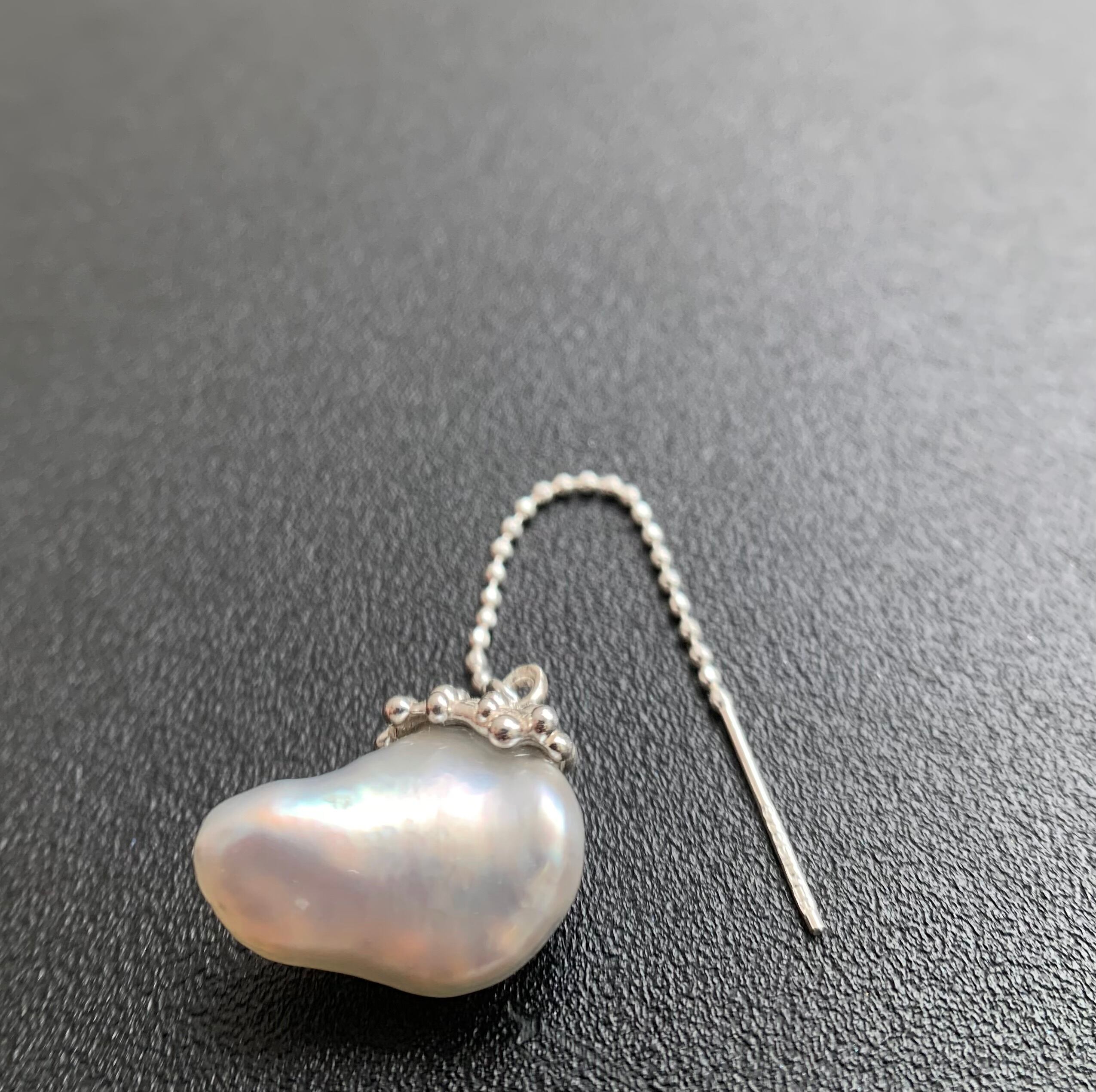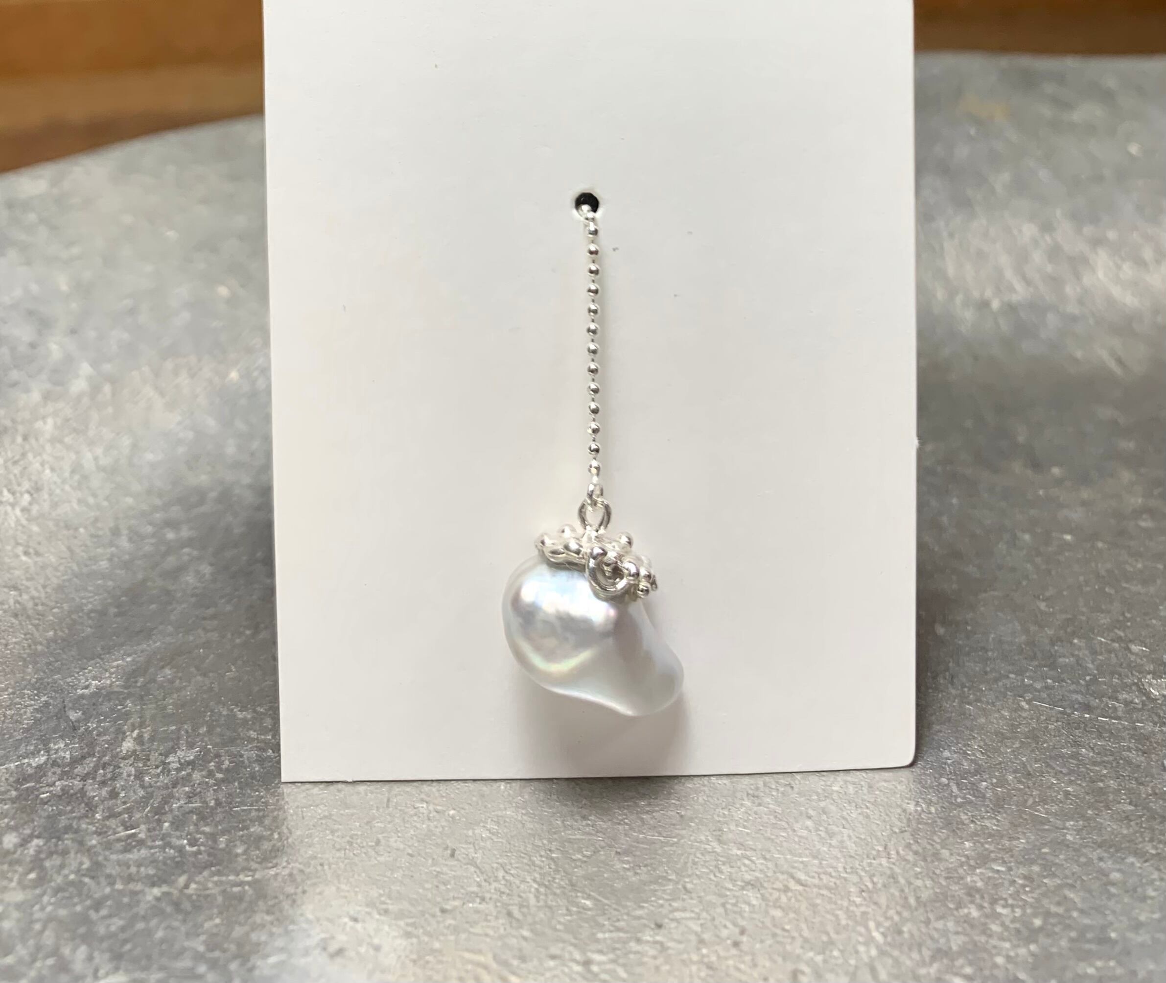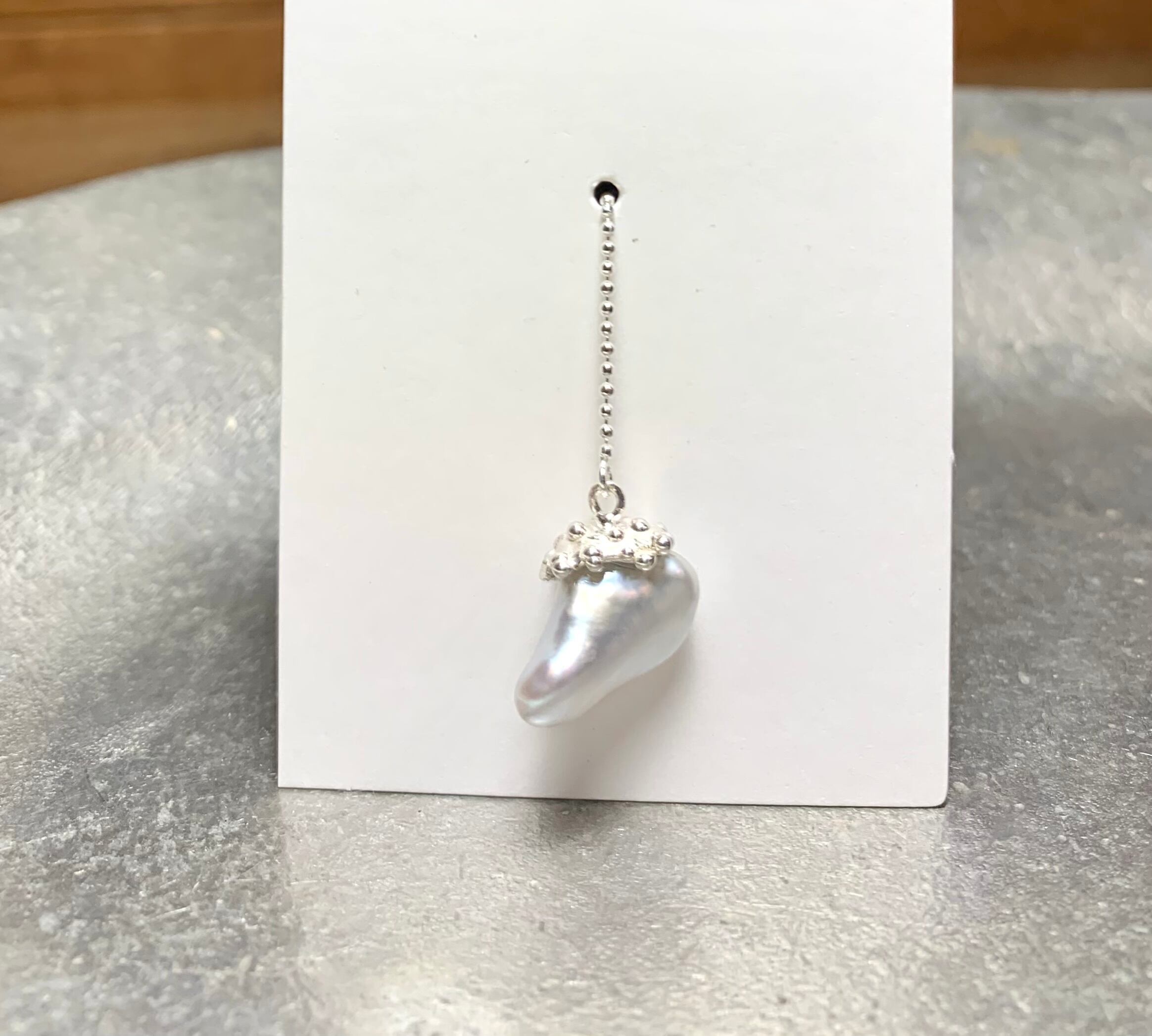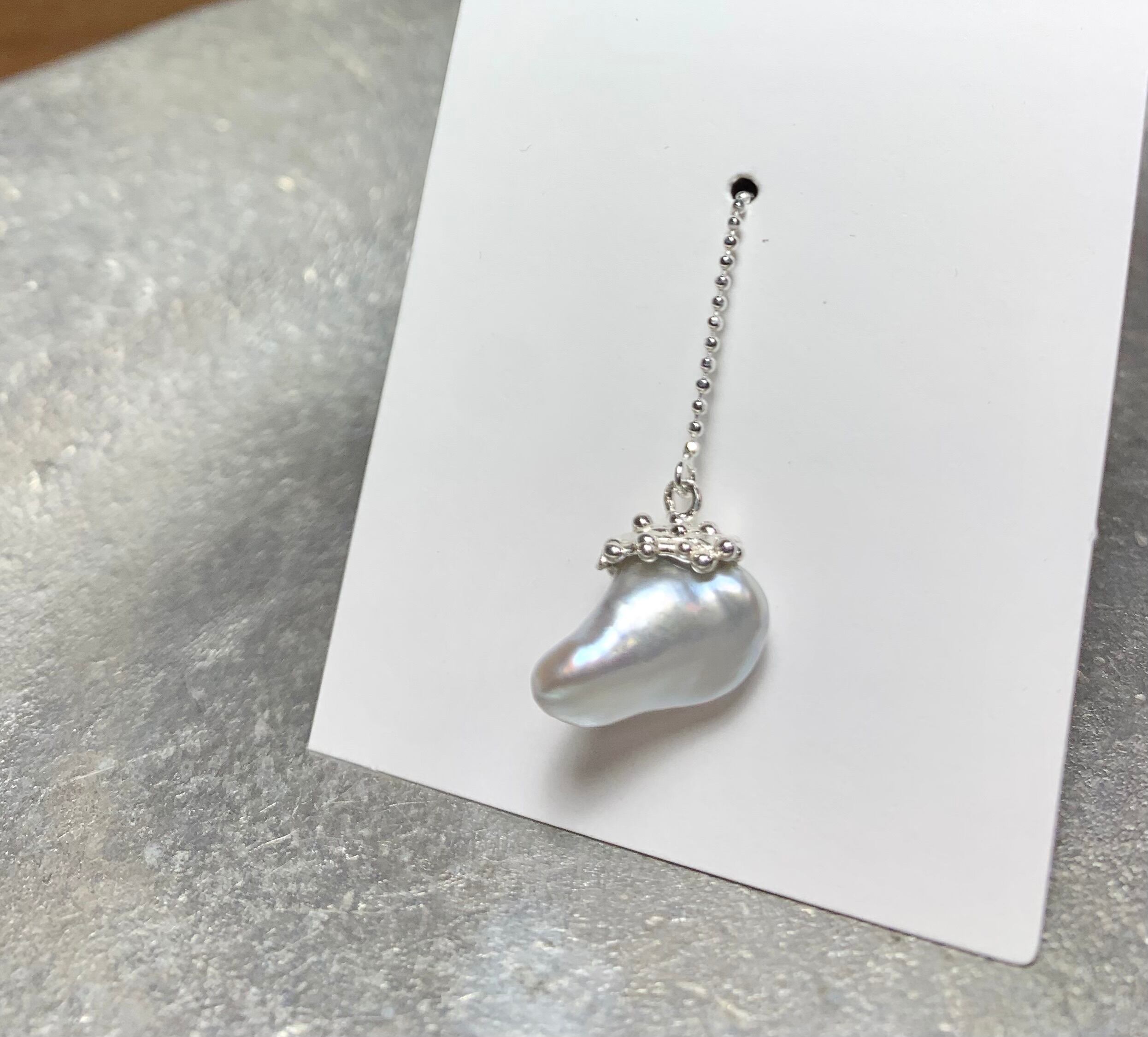 ev バロックパールチェーンピアス(シングル)/Baroque pearl chain earrings