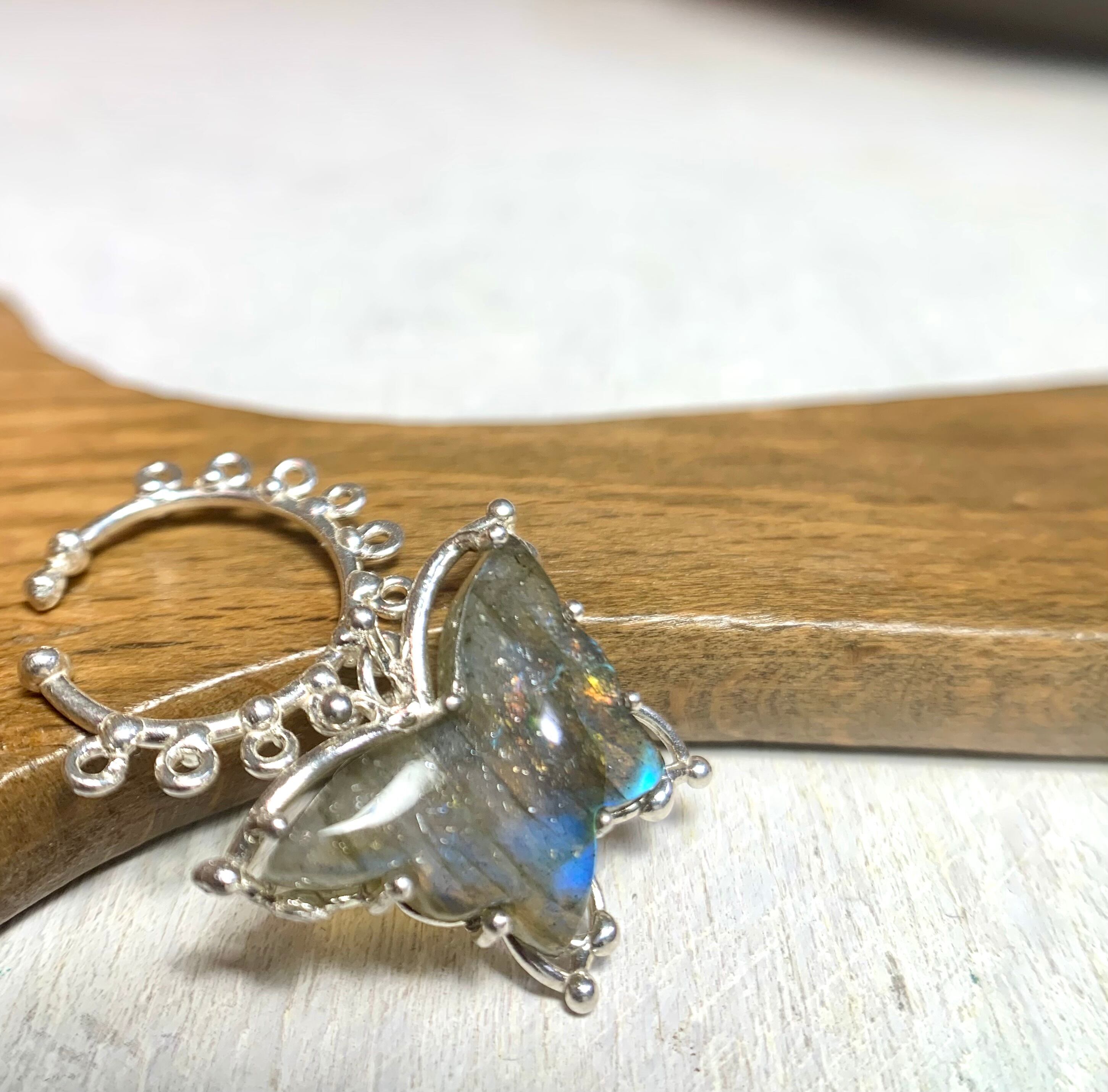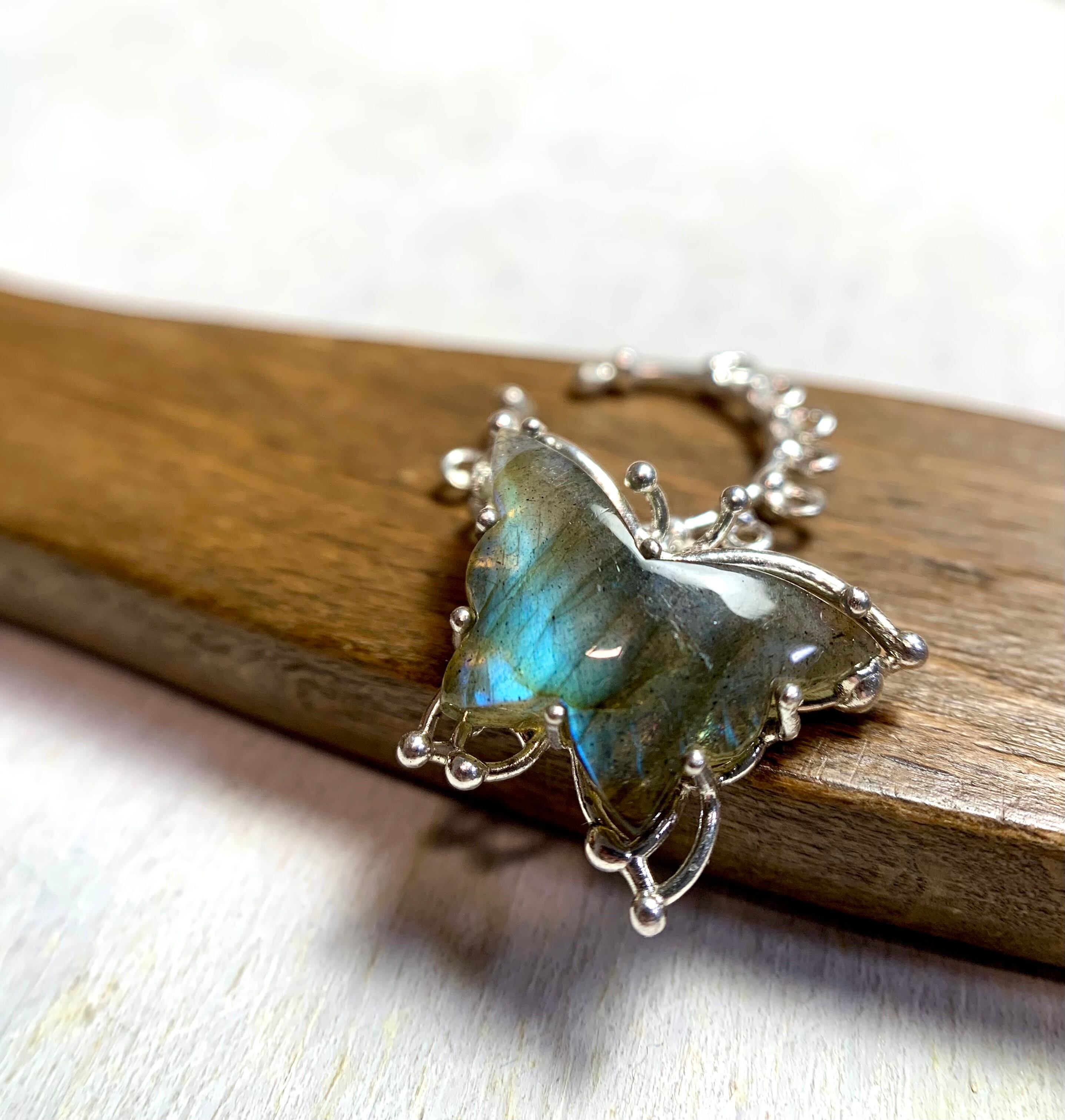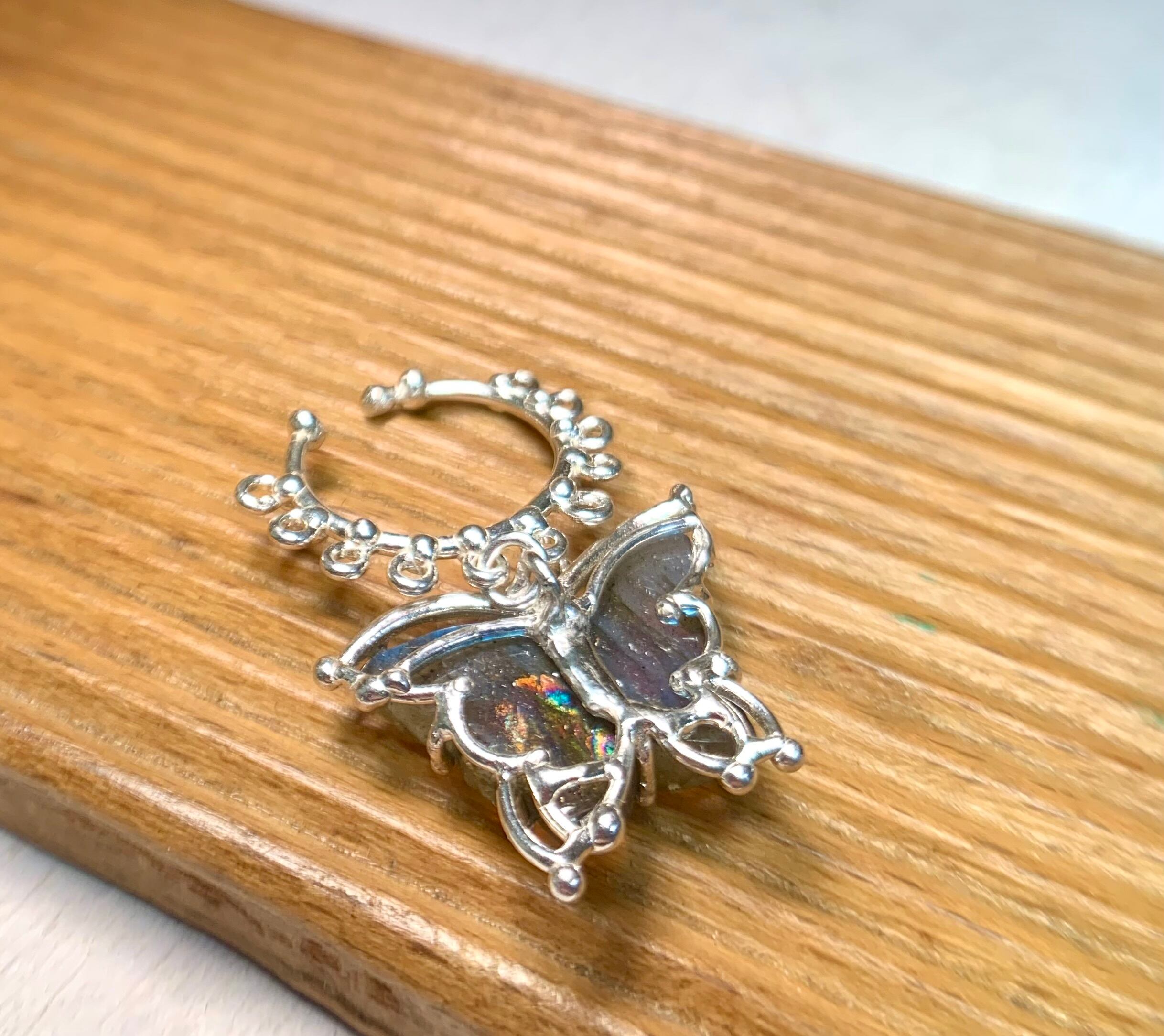 ラブラドライトの青い蝶々 ブルーバタフライイヤーカフ(イヤカフ)