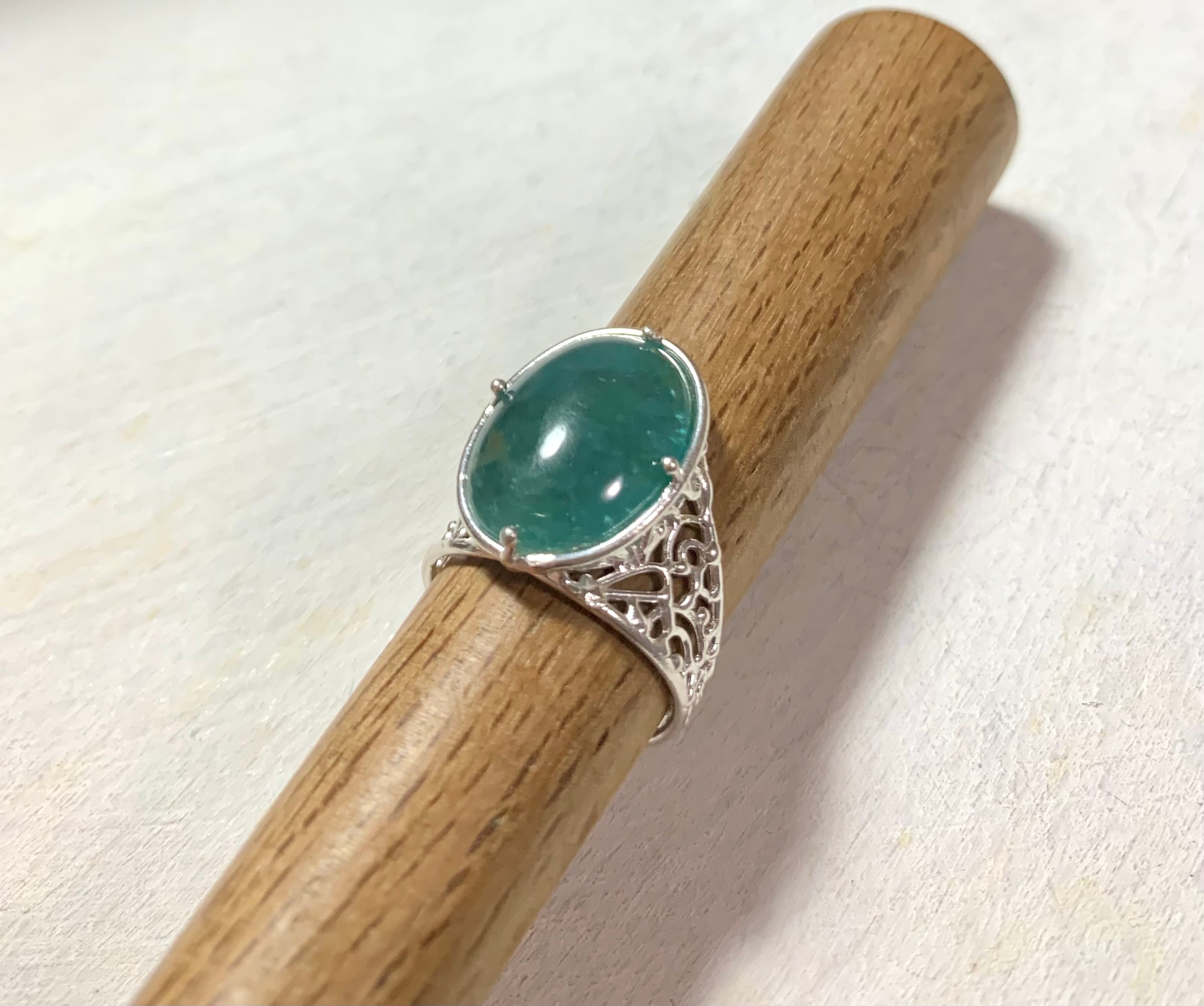8ctのたっぷりとしたサイズのグランディディエライトを、細かなモチーフのアームでリングに仕立てました。