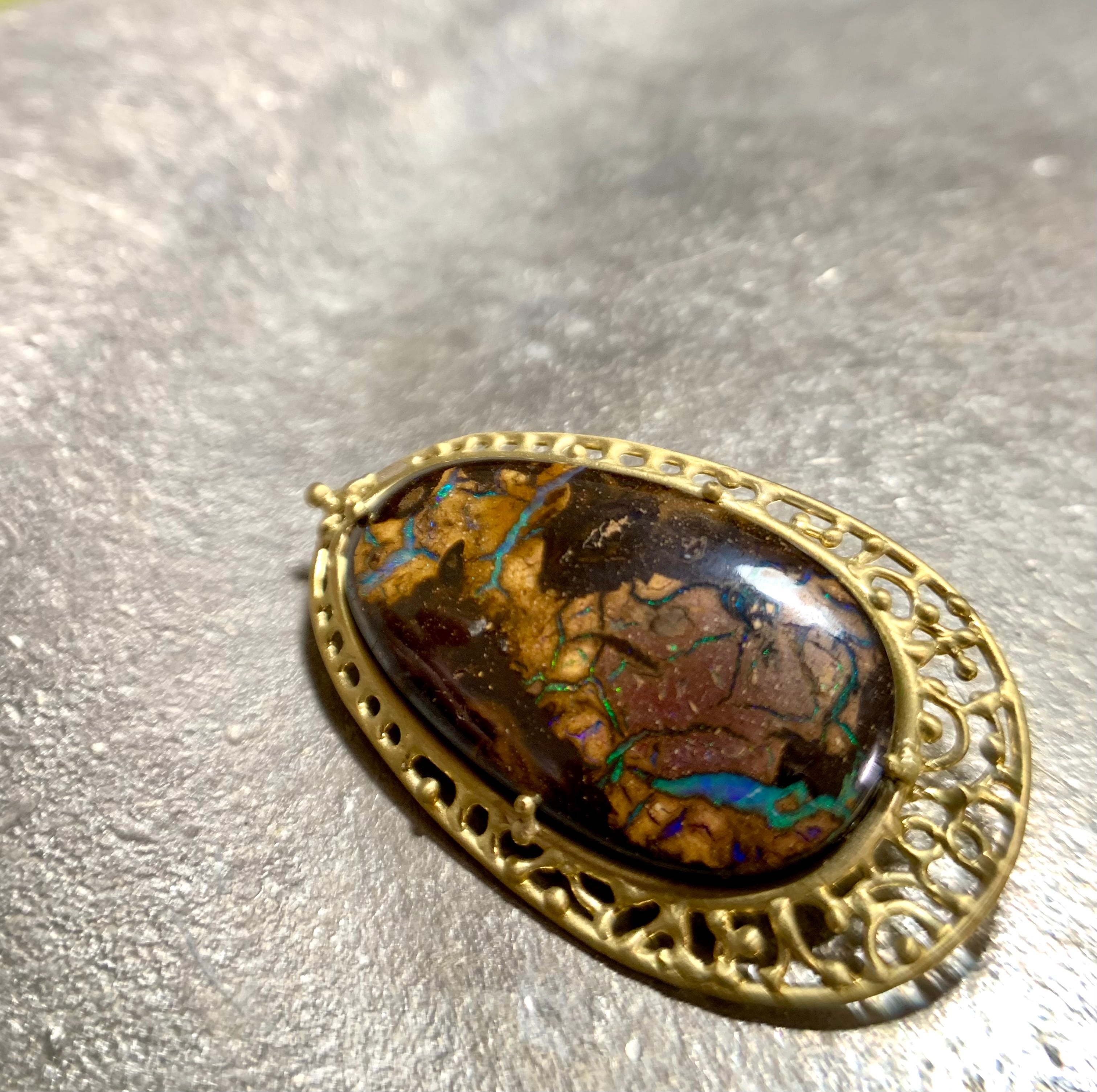 ピクチャーオパール真鍮ブローチ/Boulder Opal brass brooch