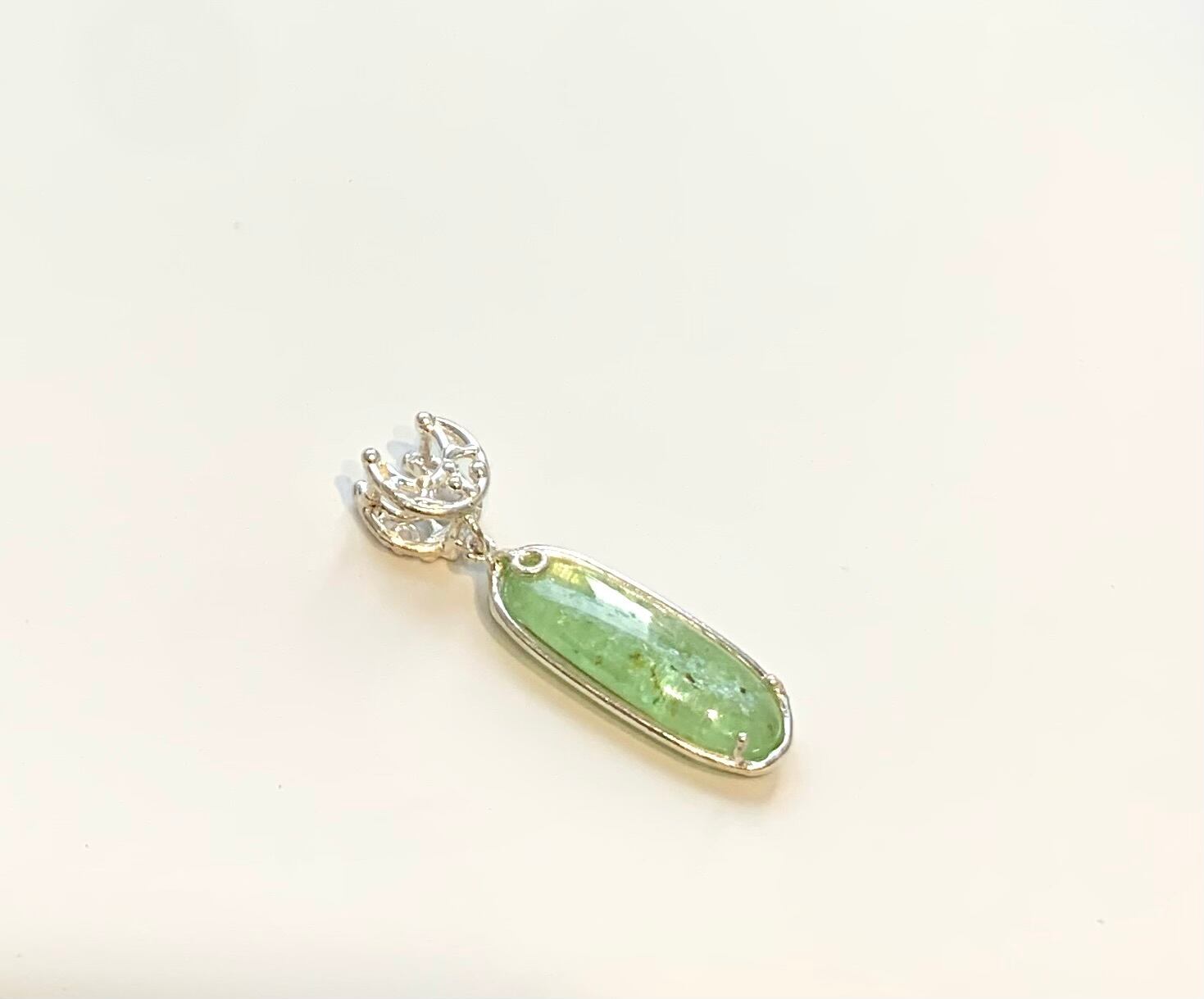 揺れるグリーンカイヤナイト 草の雫ペンダントトップ