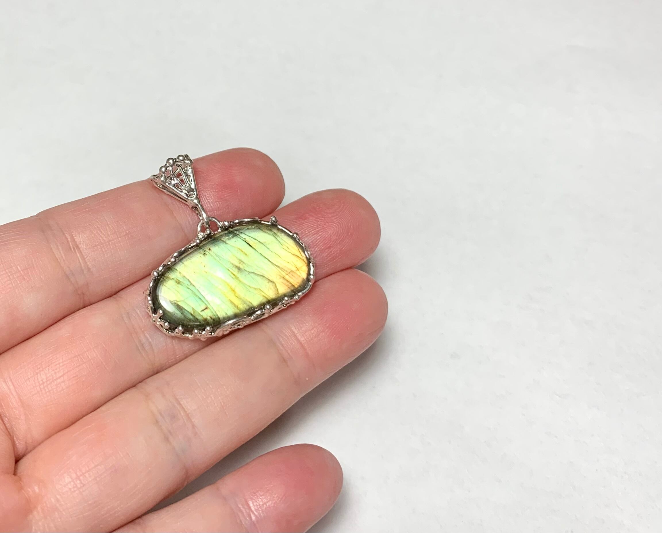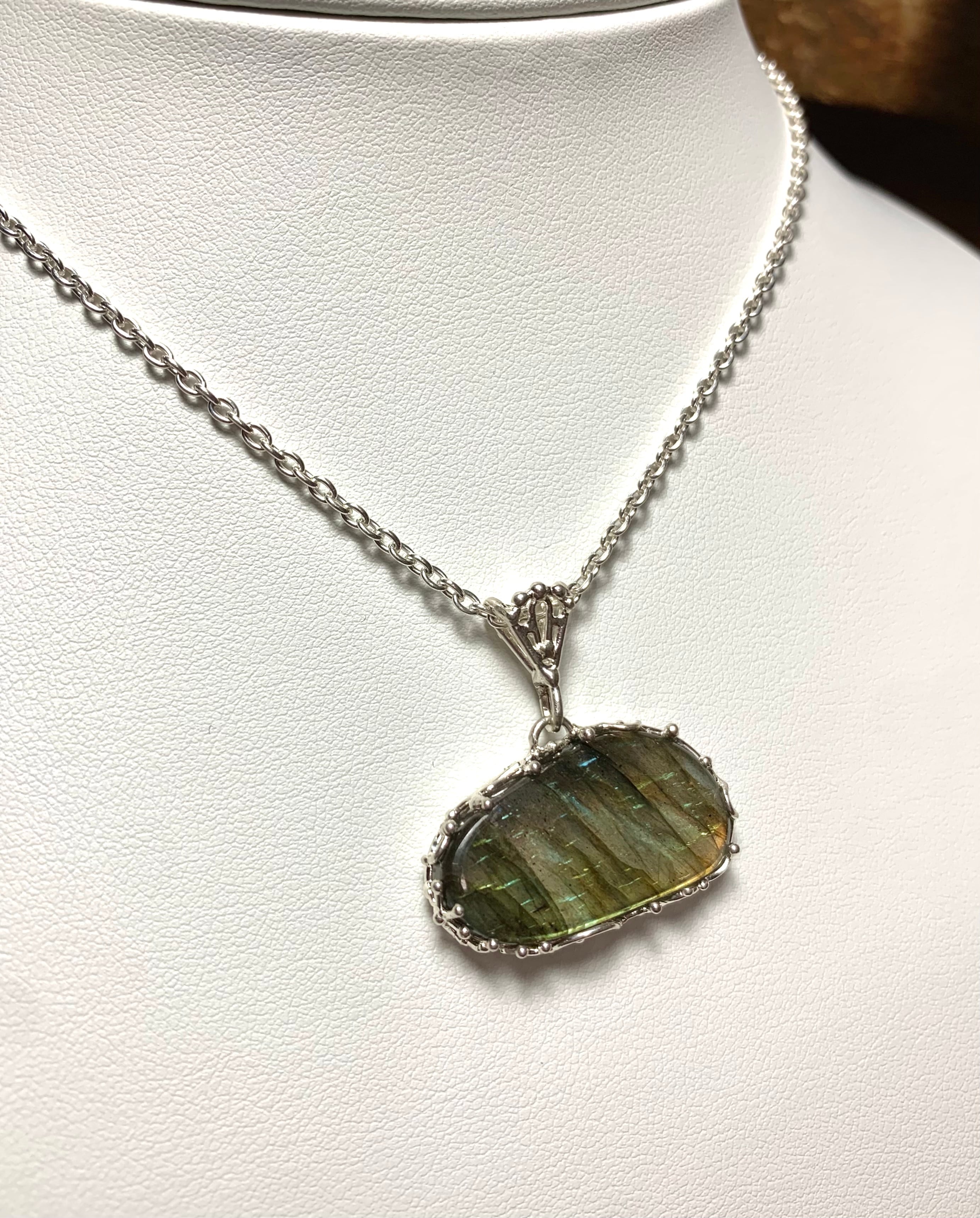 ラブラドライトのフリーフォームカボションのペンダントトップです。