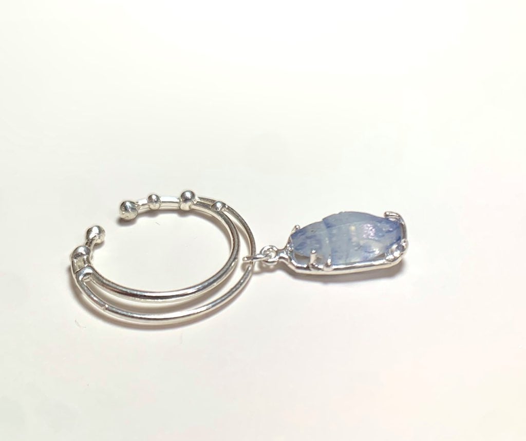 スリランカ産ブルーサファイア結晶が揺れるイヤーカフ(イヤカフ)