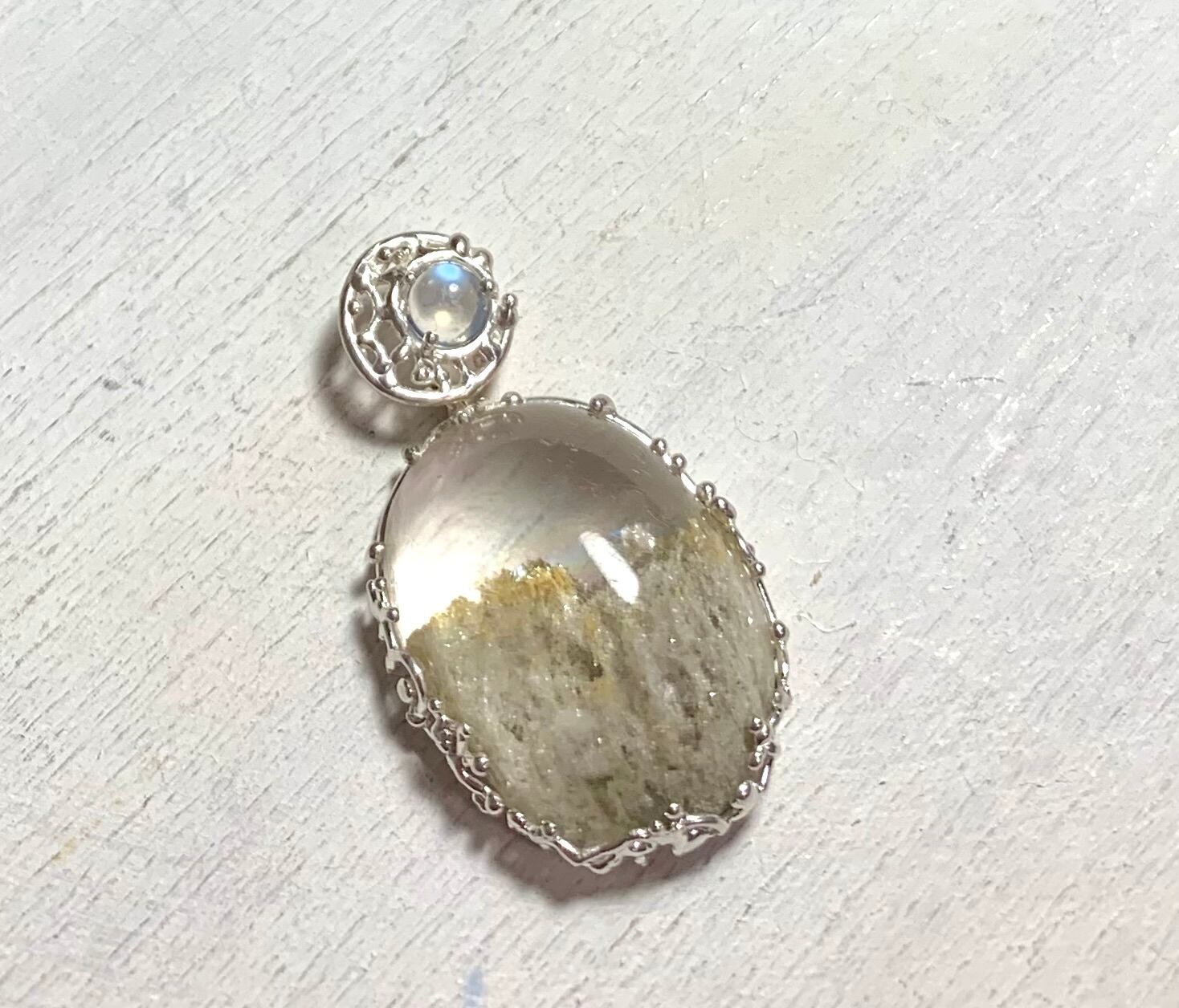 セリサイトインクォーツ&ロイヤルブルームーンストーン ペンダントトップ