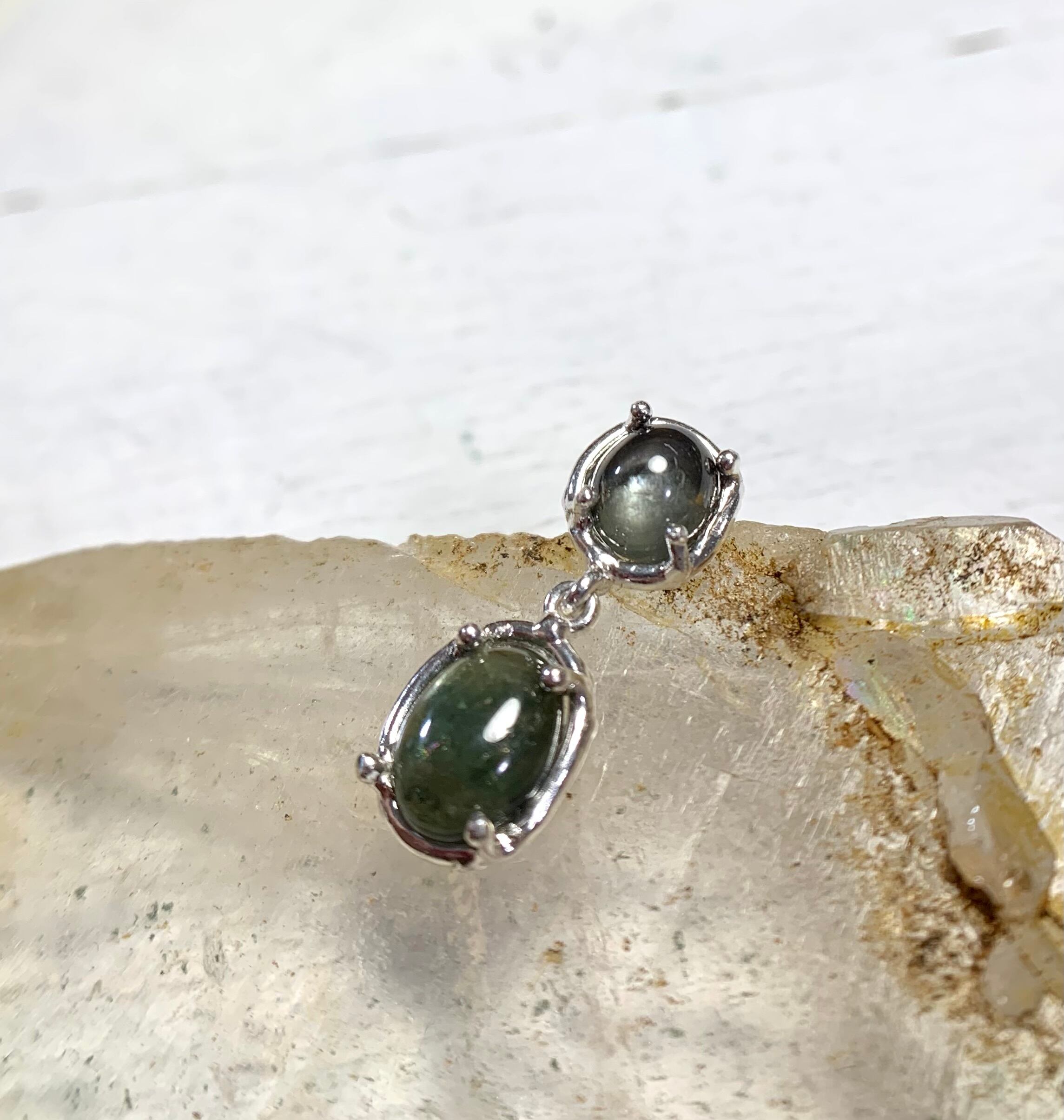 ニュアンスのある色みが魅力のタイ産サファイア2石をピアスに仕立てました。