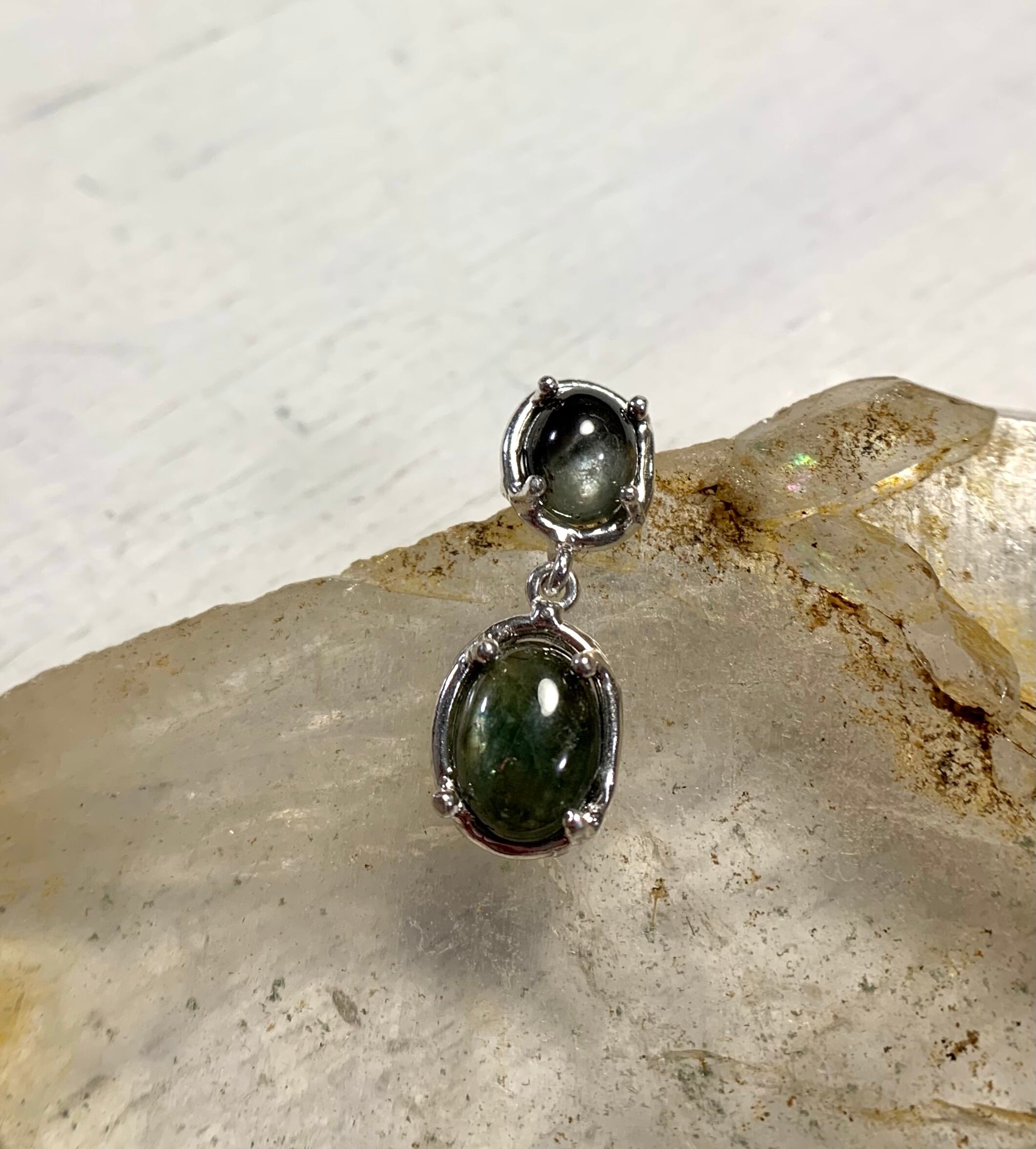 シックなバイカラー 2石のサファイアのシングルピアス(片耳ピアス)